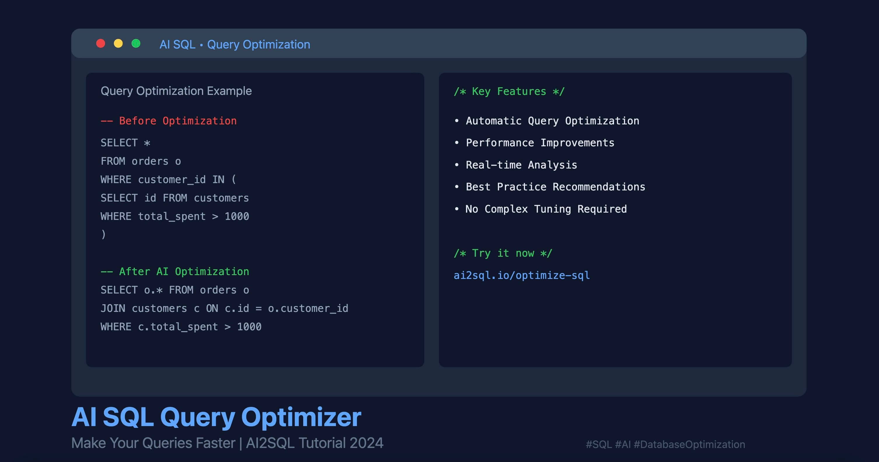 AI2SQL transforme le langage courant en commandes SQL précises, ce qui facilite les opérations suivantes :