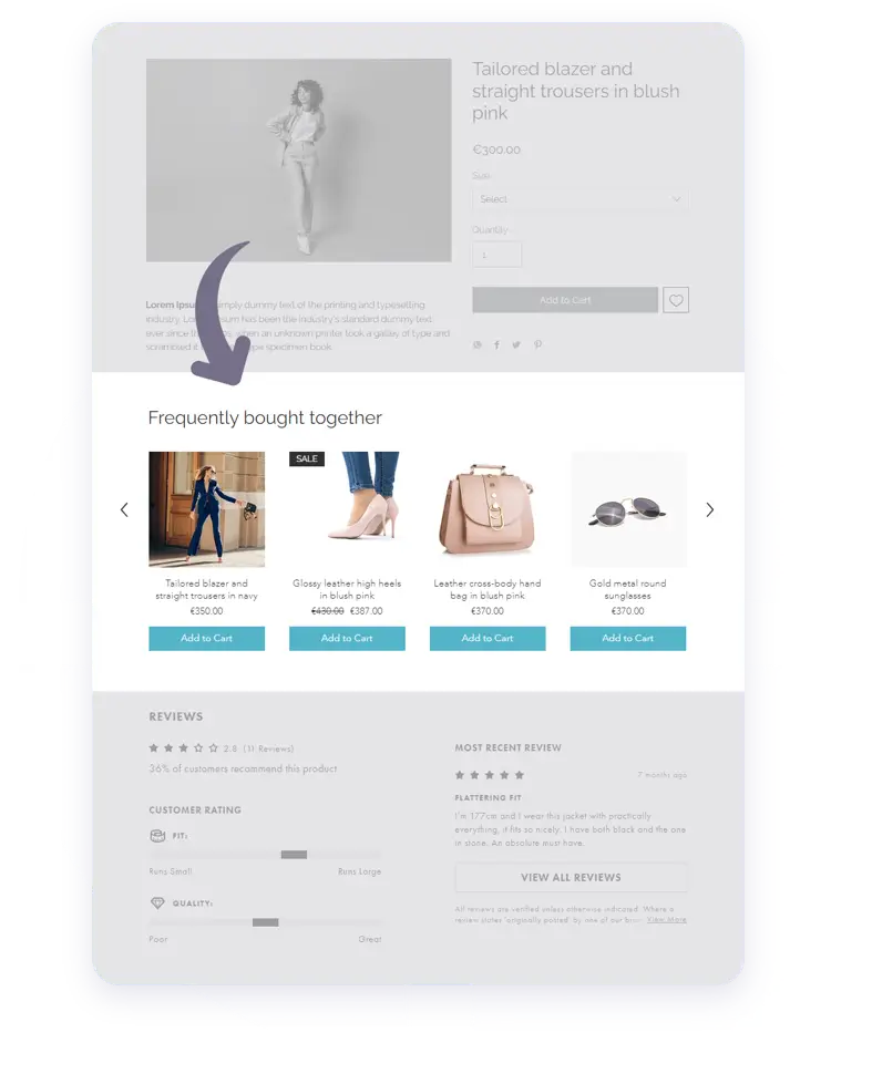 Plus de 10 types de recommandations (vente incitative, vente croisée, alternative, nouveauté en magasin) pour augmenter le taux de conversion et l'AOV.