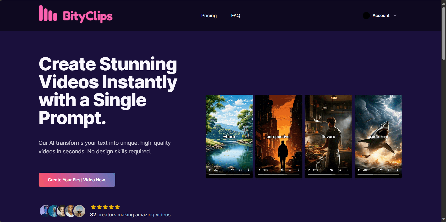 BityClips est un générateur vidéo alimenté par l'IA qui aide les utilisateurs à créer instantanément des vidéos courtes et sans visage à partir d'instructions textuelles. Que vous soyez un créateur de courts métrages YouTube, un influenceur TikTok ou un spécialiste du marketing, BityClips offre un moyen rapide, facile et abordable de produire du contenu attrayant sans compétences en édition.