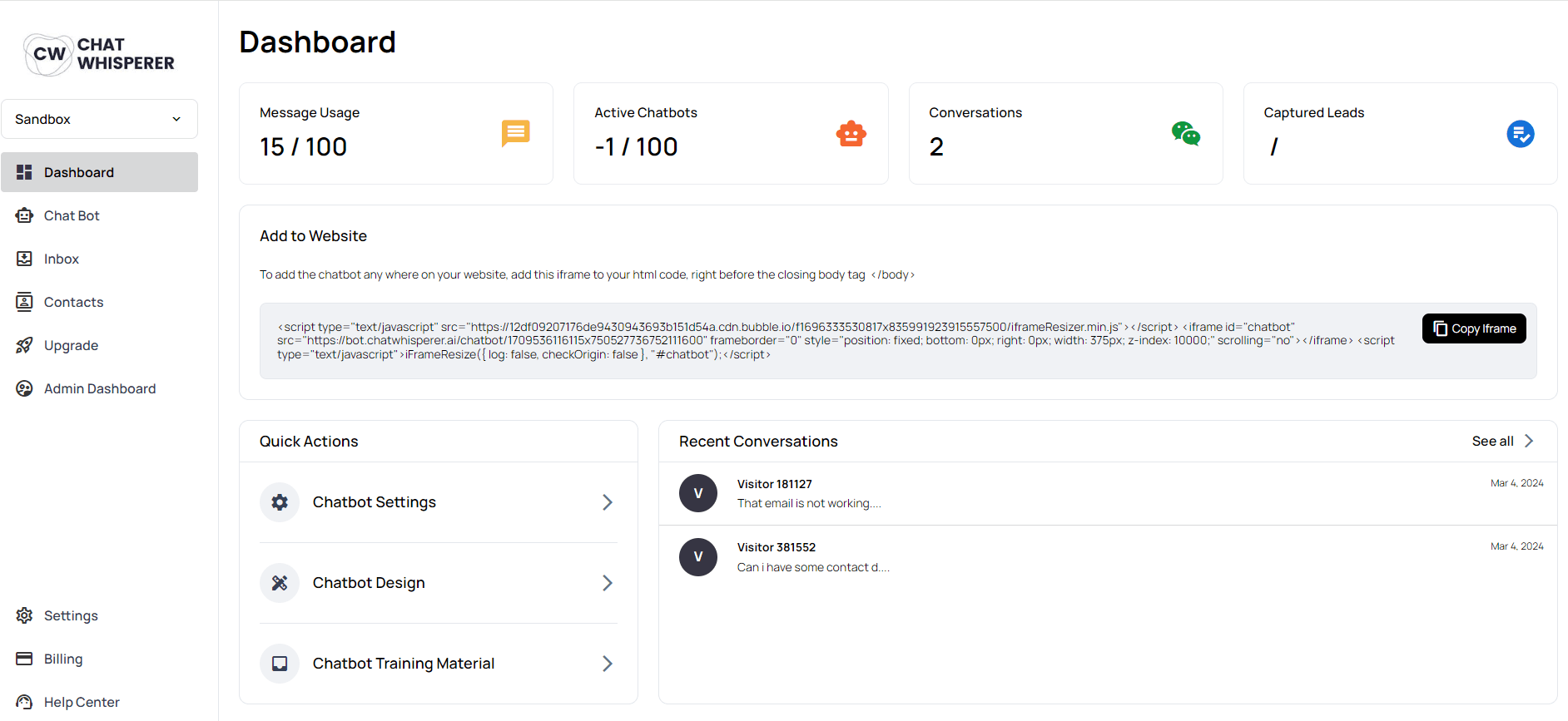 Créez un chatbot IA personnalisé pour votre site Web en quelques minutes.