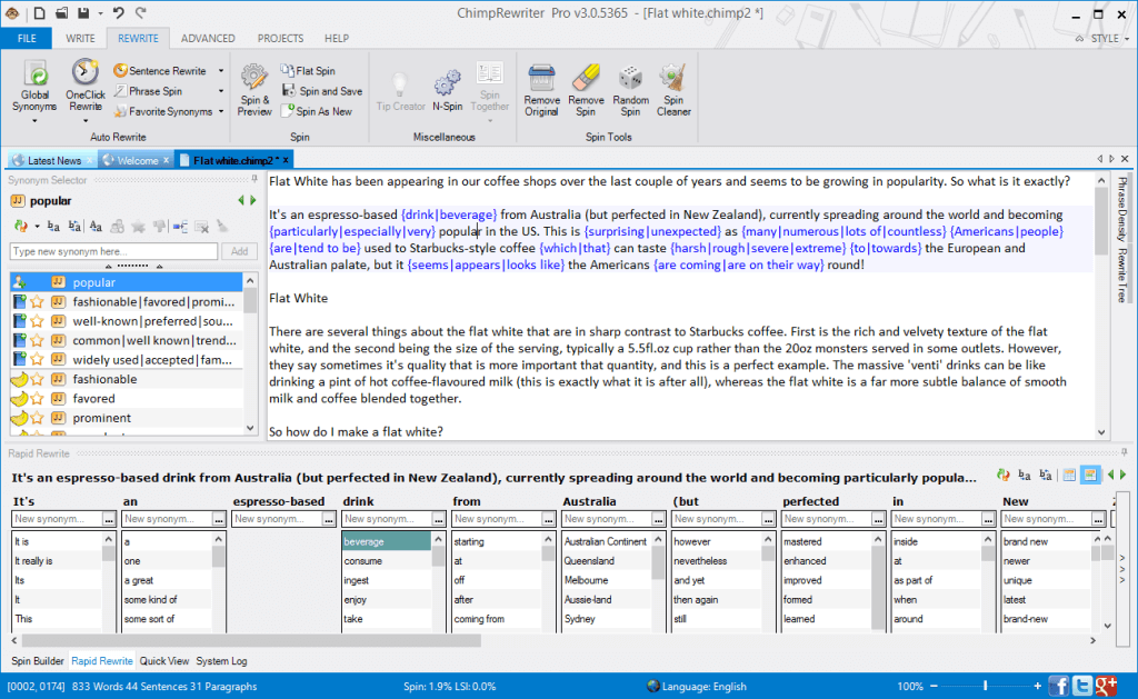 Chimp Rewriter utilise l'IA et la PNL pour :