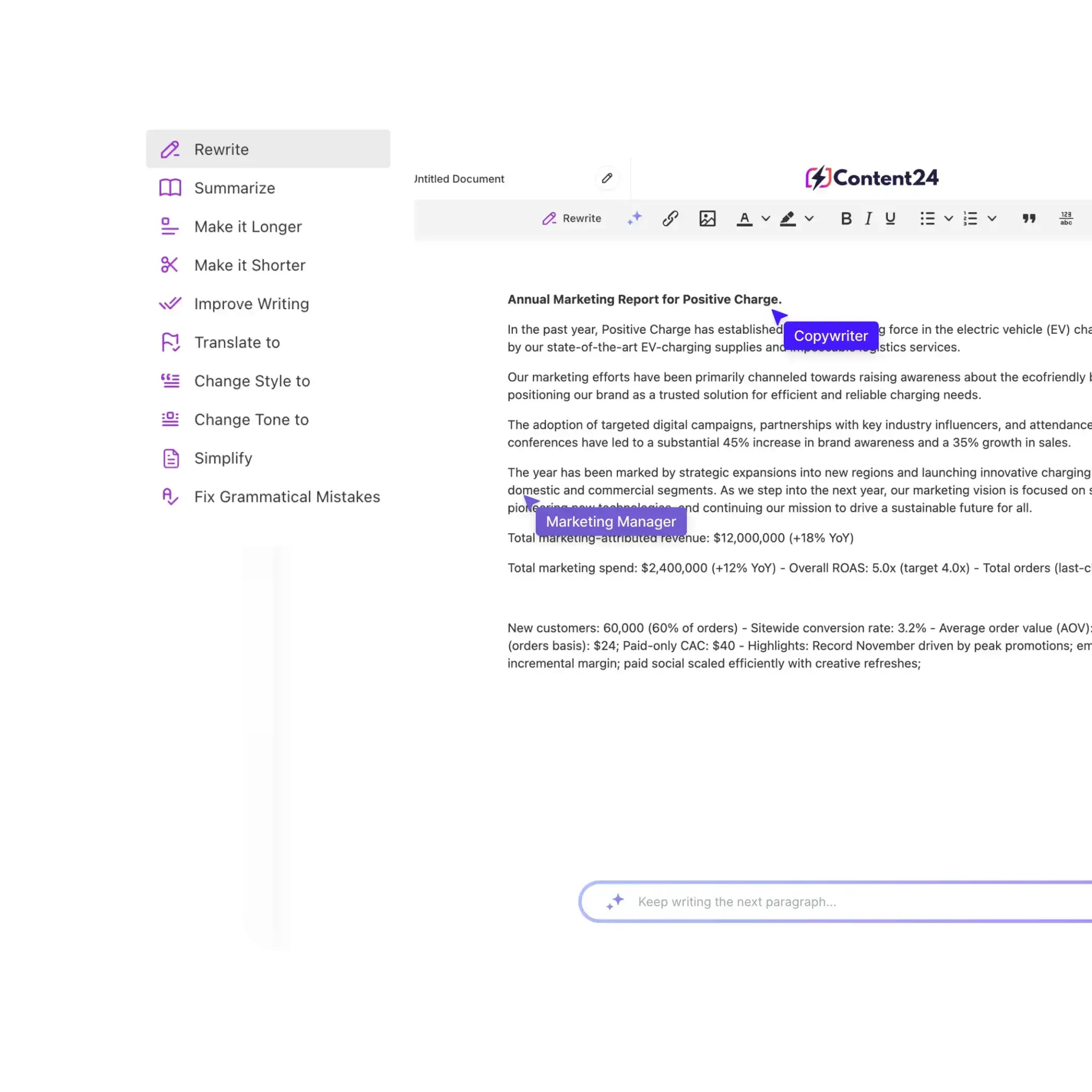 Content24 est un espace de travail IA unifié qui aide les utilisateurs à générer, modifier et collaborer sur du contenu plus rapidement et de manière plus cohérente. Il combine des outils d'écriture par IA, d'édition de documents, de génération/édition d'images, de création vidéo, de chat et de code sur une seule plateforme. Les utilisateurs peuvent commencer à partir de modèles, affiner en alignant la voix de la marque et exporter ou partager le contenu final de manière fluide. Les utilisateurs types incluent les spécialistes du marketing, les créateurs, les équipes et les professionnels qui ont besoin de flux de travail de contenu évolutifs et multiformats.