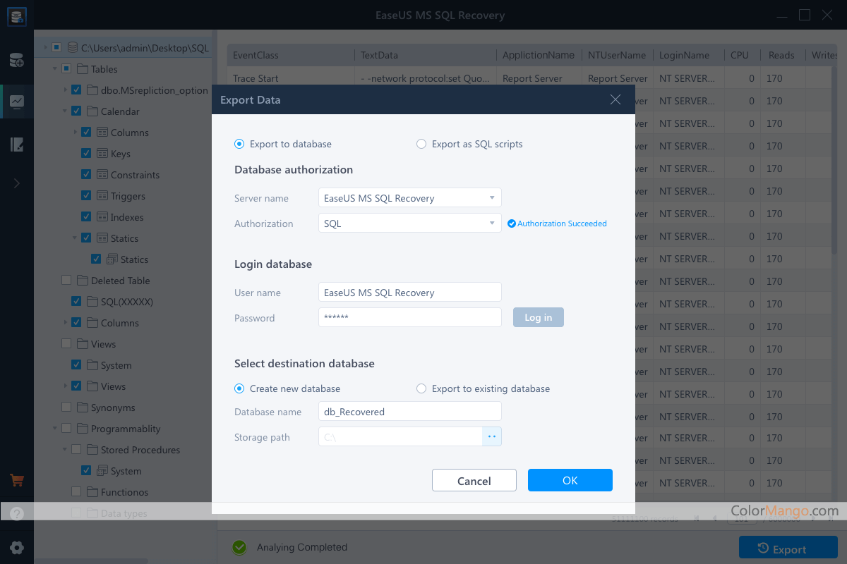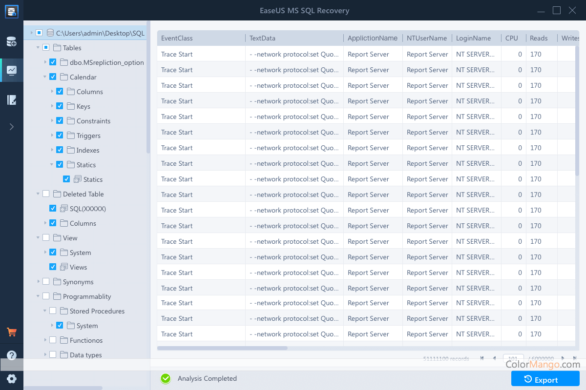 EaseUS MS SQL Recovery peut récupérer des composants de base de données supprimés (tables, déclencheurs, index, clés, règles et procédures stockées) et des enregistrements de la base de données SQL. Il prend en charge MS SQL Server 2019-2008 et les versions antérieures.