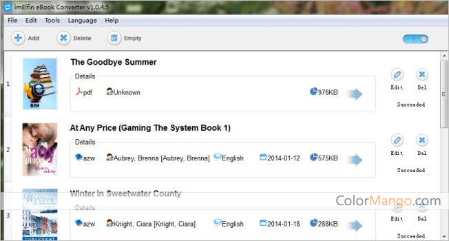 eBook Converter supports converting EPUB, PDF, Mobi, AZW, HTML ebook into formats like EPUB, PDF or Mobi format. It's capable of batch conversion with fast speed, and there will be no quality loss. You can also use eBook Converter to edit metadata like cover, title, author as well as repair damaged EPUB files.