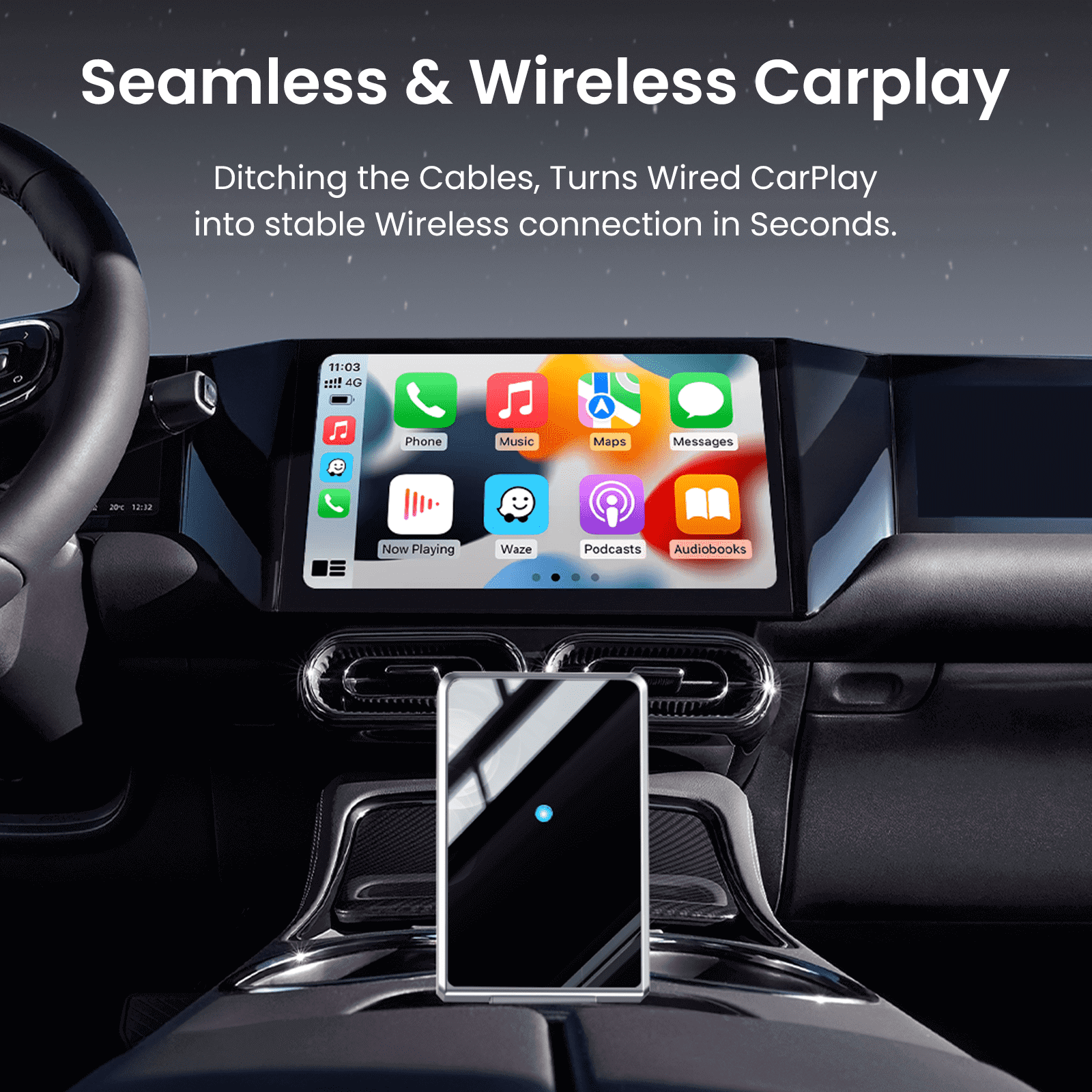 Convertissez CarPlay ou Android Auto filaires existants en câbles sans fil prêts à l'emploi et à l'abandon.