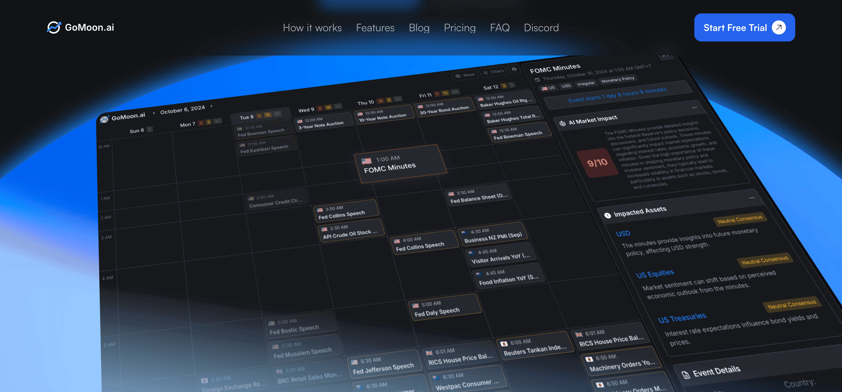Calendrier économique basé sur l'IA pour les traders qui prédit l'impact des événements, suit les données en temps réel et envoie des alertes personnalisées.