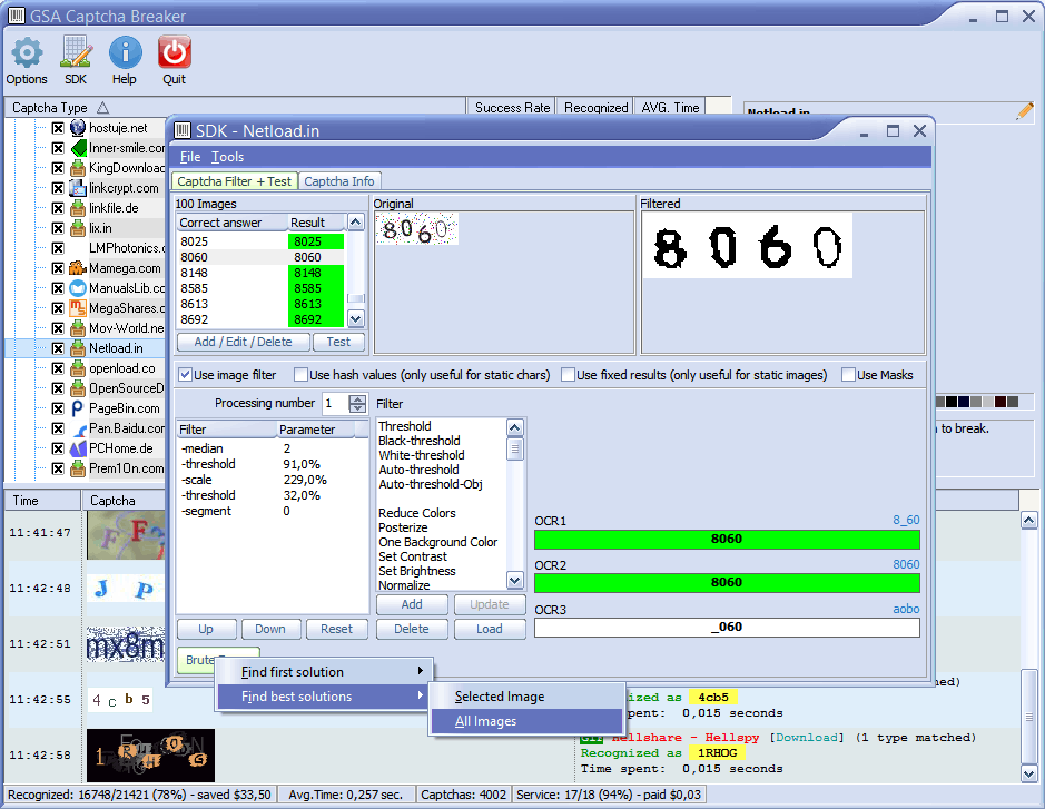 Après mes tests, je trouve que GSA Captcha Breaker peut résoudre plus de 400 types de catpcha, alors que C Sniper ne peut en atteindre que 200. C'est la fonctionnalité la plus utile pour un programme de résolution de captcha. En outre, les utilisateurs peuvent soumettre de nouveaux captchas à une base de données en ligne afin d'améliorer le programme. Comme c'est génial !
