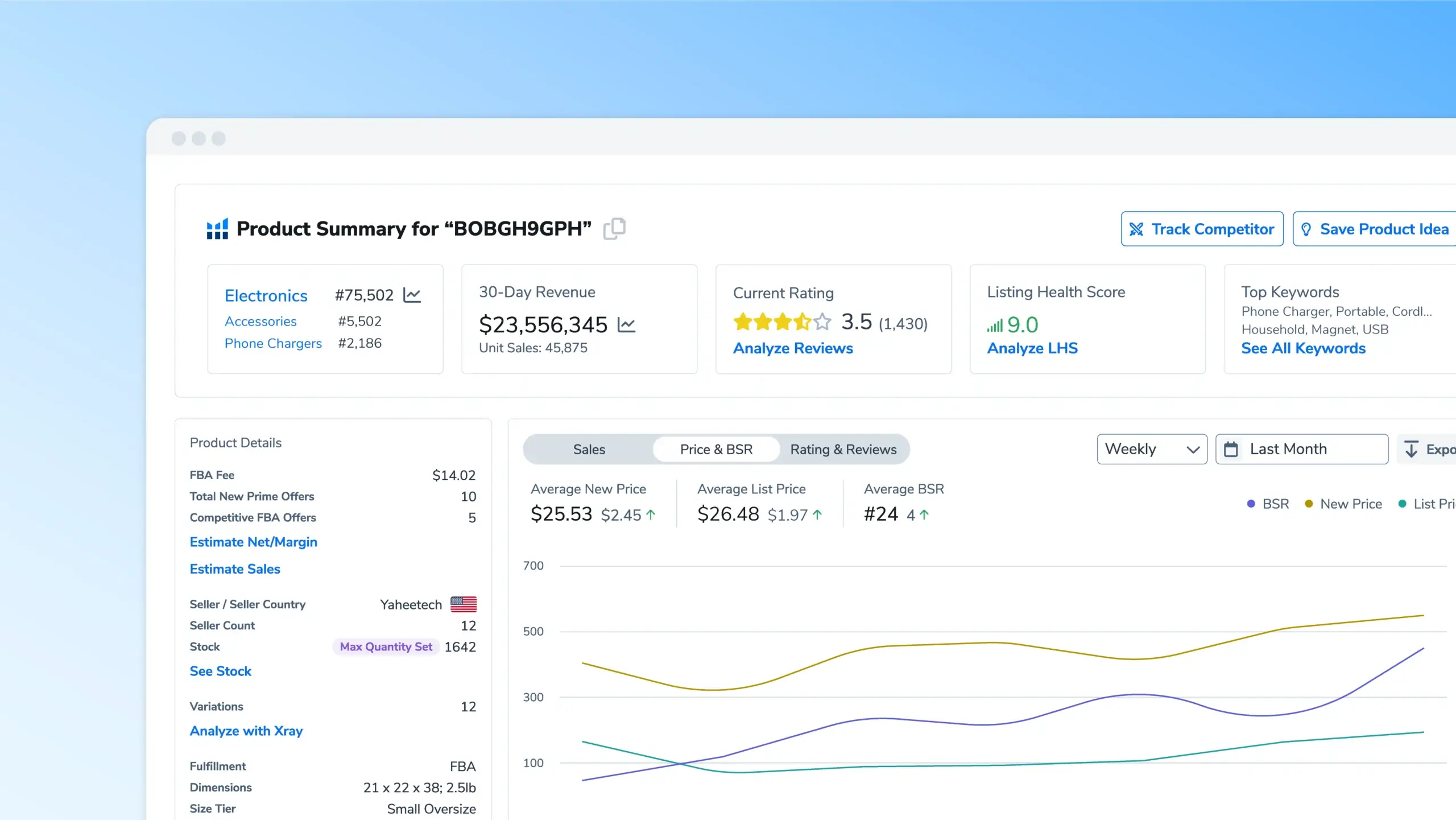 Avec des outils pour la recherche de produits, l'analyse des mots clés, l'optimisation des listes, les publicités automatisées, les alertes d'inventaire, etc.