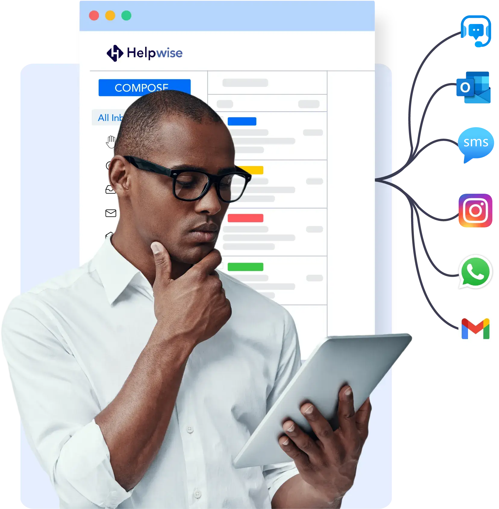 Boîte de réception universelle : gérez les e-mails, le chat, WhatsApp et les réseaux sociaux en une seule vue.