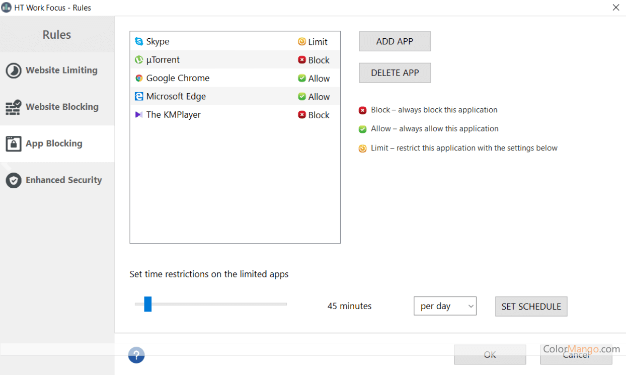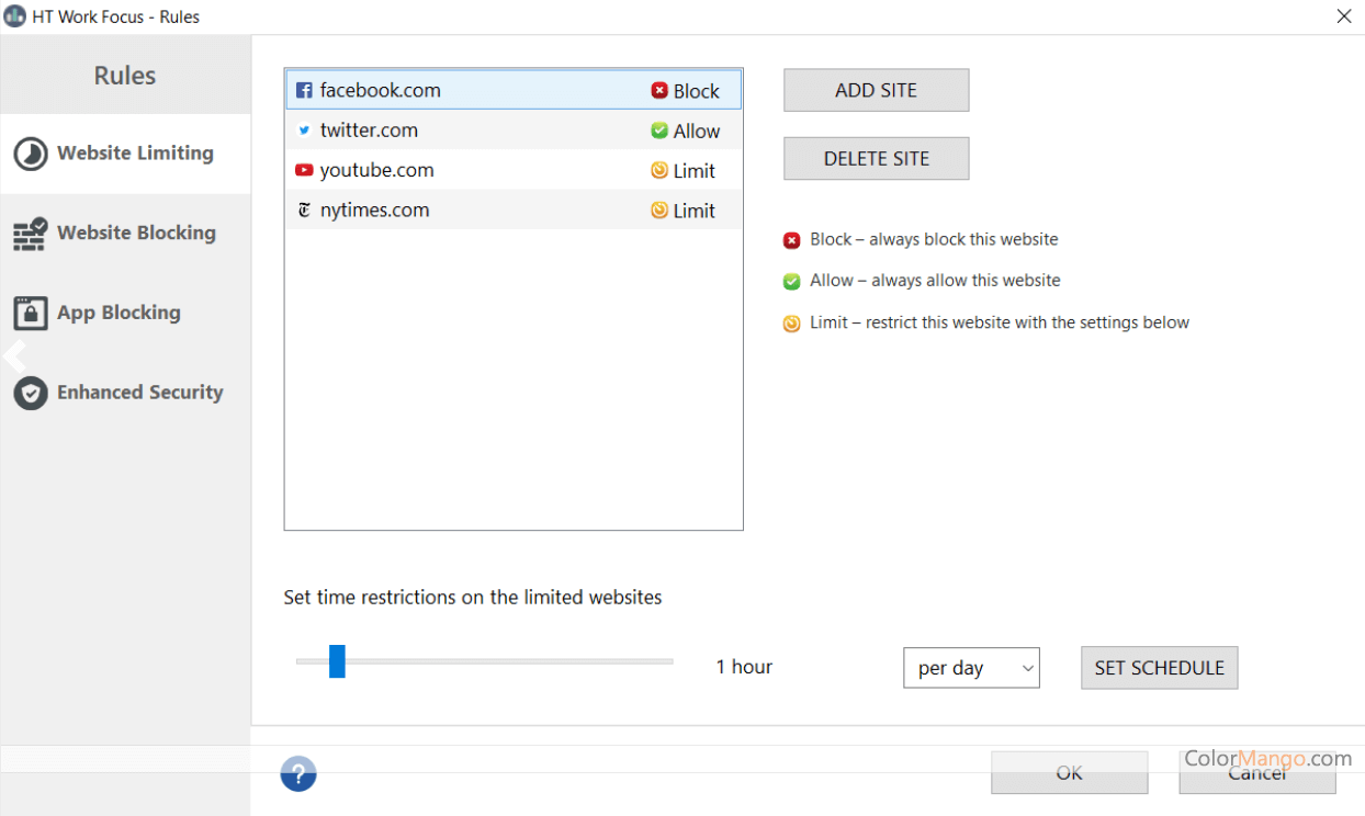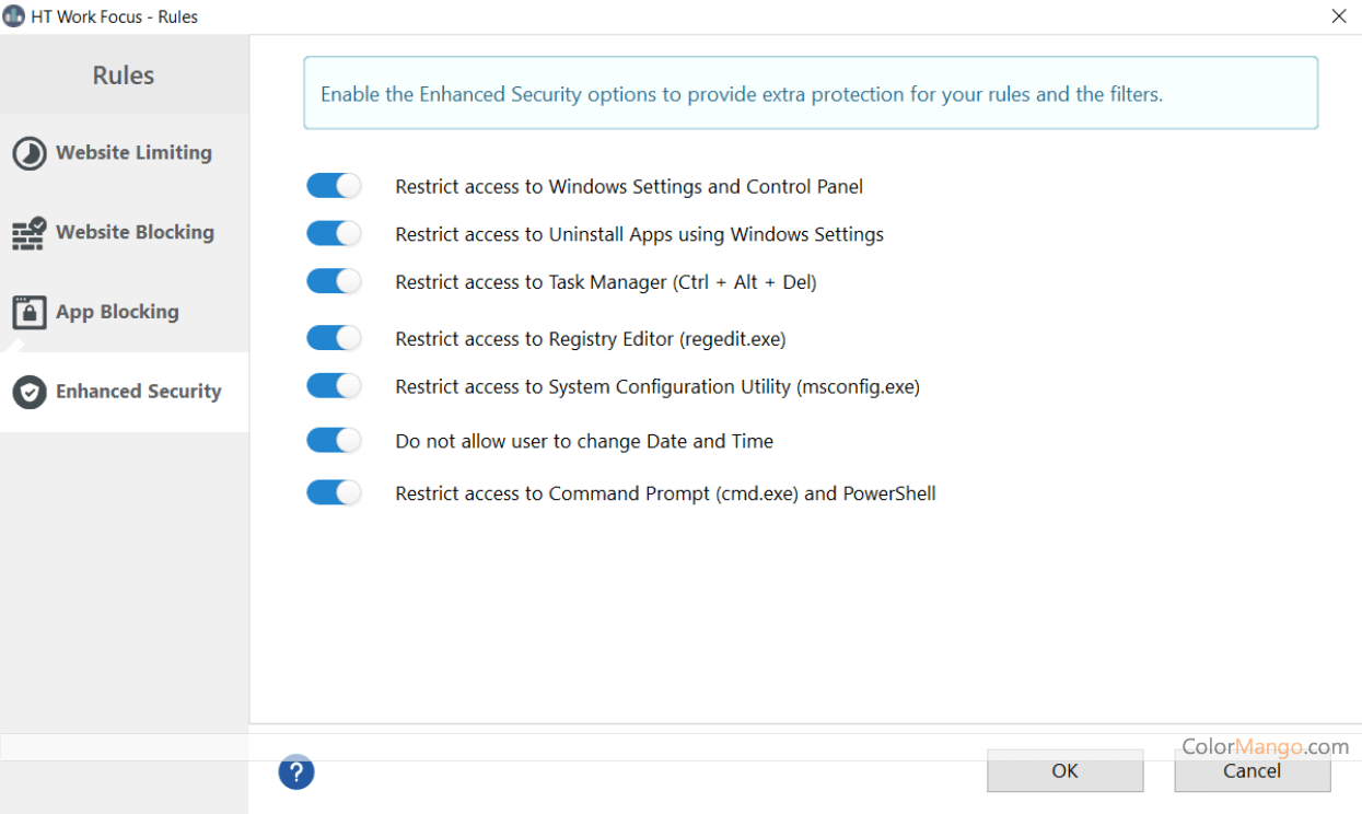 HT Work Focus est une application de productivité pour le suivi du temps des employés et la gestion des activités. Il soutient, *Blocage des applications *Limites du site Web *Blocage de sites Web *Calendrier de surveillance *Rapports sur les applications *Requêtes de recherche *Signalement par e-mail *Listes de blocage et d'autorisation *Limites de temps pour les sites et les applications *Calendrier pour certains sites et applications *Accès à des sites de confiance uniquement * Rapports personnalisés avec l'heure de l'ordinateur, les sites Web/applications visités, le temps d'inactivité, les captures d'écran et les requêtes de recherche