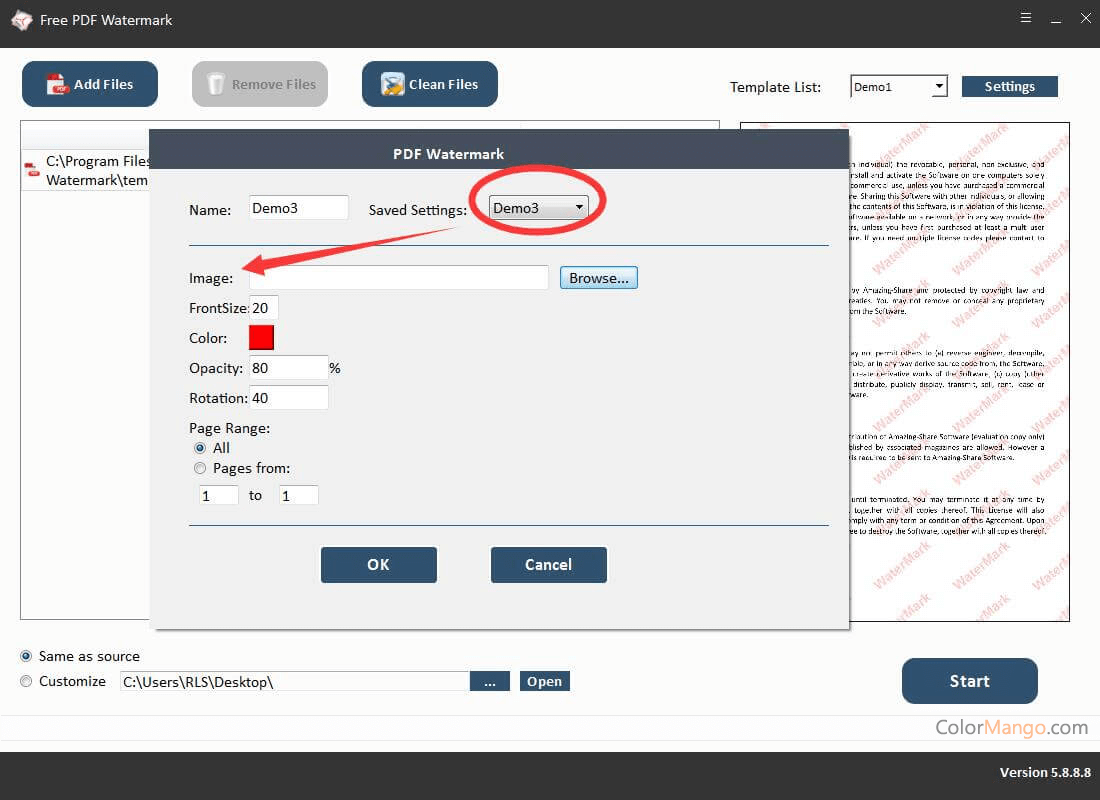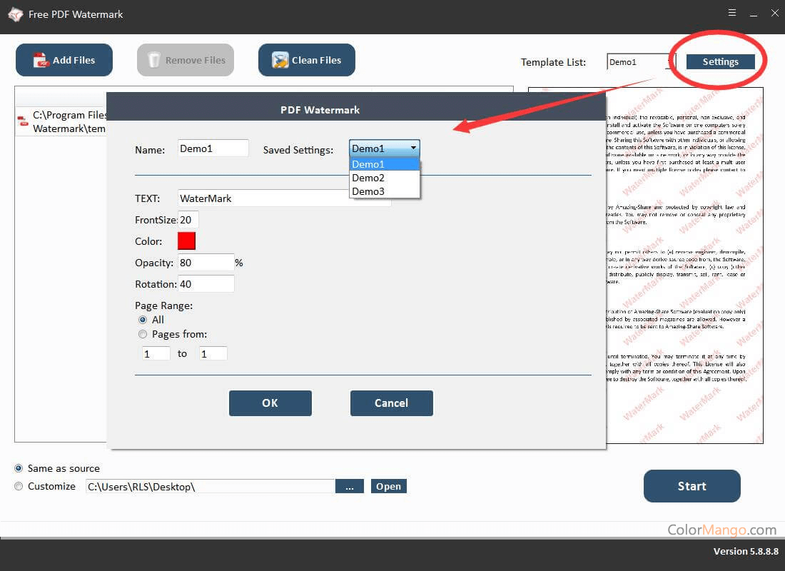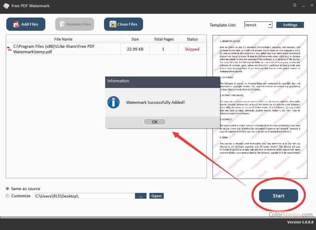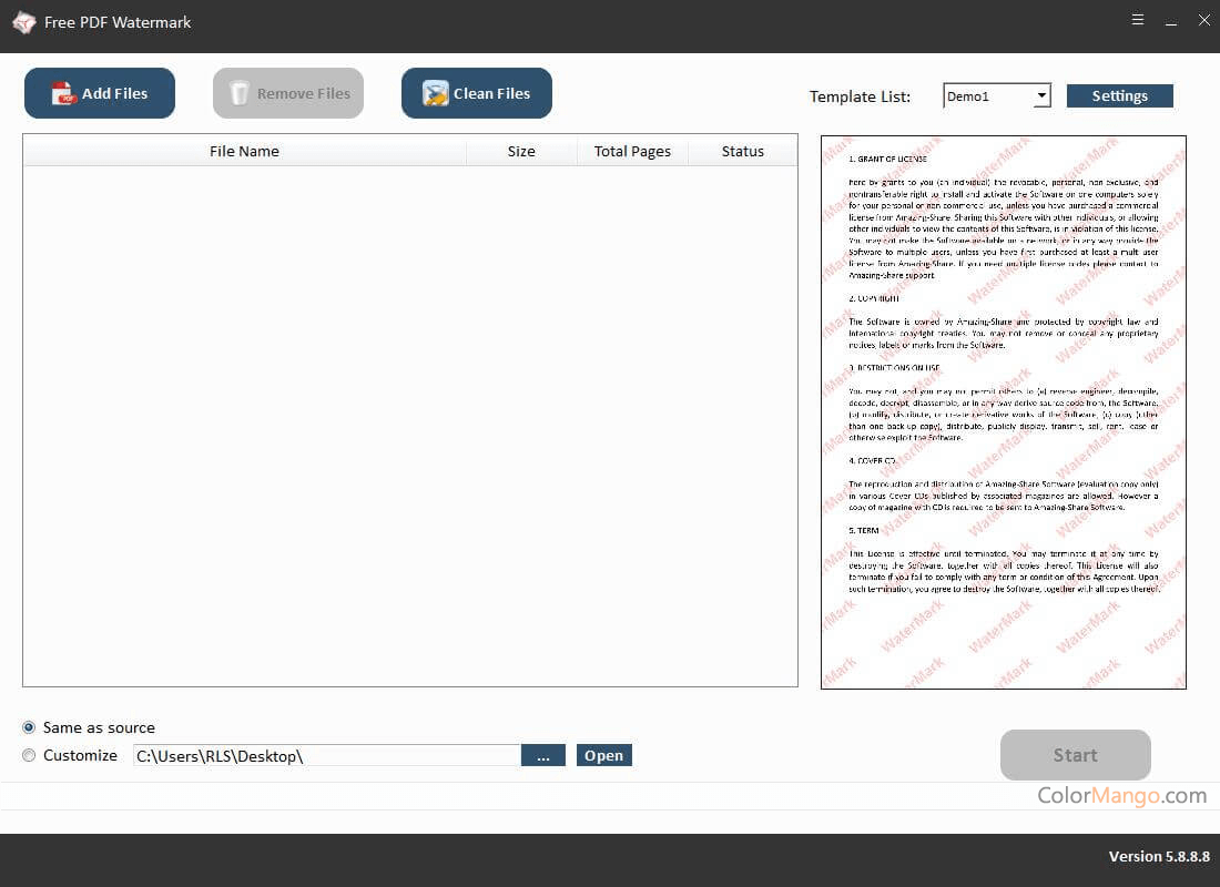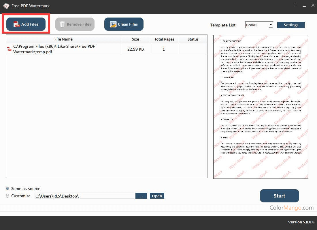 iLike PDF Watermark Pro provides a simple way to add Text/Image Watermark to multiple PDF files quickly with 3 simple steps. It also comes with watermark template, enabling you to adjust the font/image size, color value, opacity, inversion and select the page range to add Watermark.