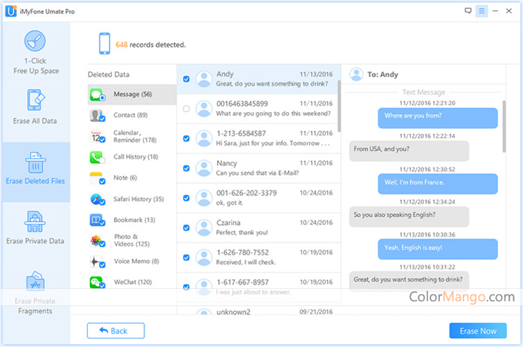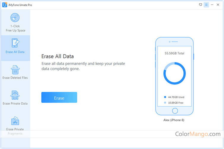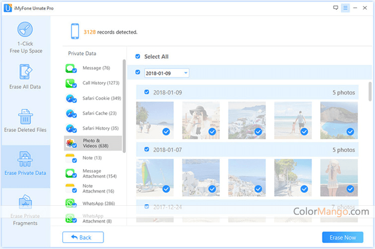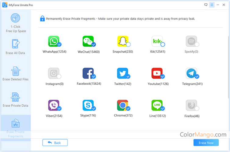 iMyFone Umate Pro vous permet de supprimer définitivement toutes vos informations personnelles telles que les photos, les vidéos, les iMessages, les contacts et les données de navigation. En outre, il prend en charge l'effacement de toutes les données d'applications telles que WhatsApp, WeChat, LINE, Kik, Viber et 10 autres. Ainsi, le propriétaire de votre appareil ne pourra pas récupérer vos fichiers supprimés car ces données n'ont jamais existé.