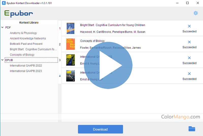 Les utilisateurs peuvent utiliser le Kortext Downloader pour charger automatiquement leur bibliothèque Kortext, télécharger des livres individuellement ou en masse et profiter de téléchargements à haut débit.