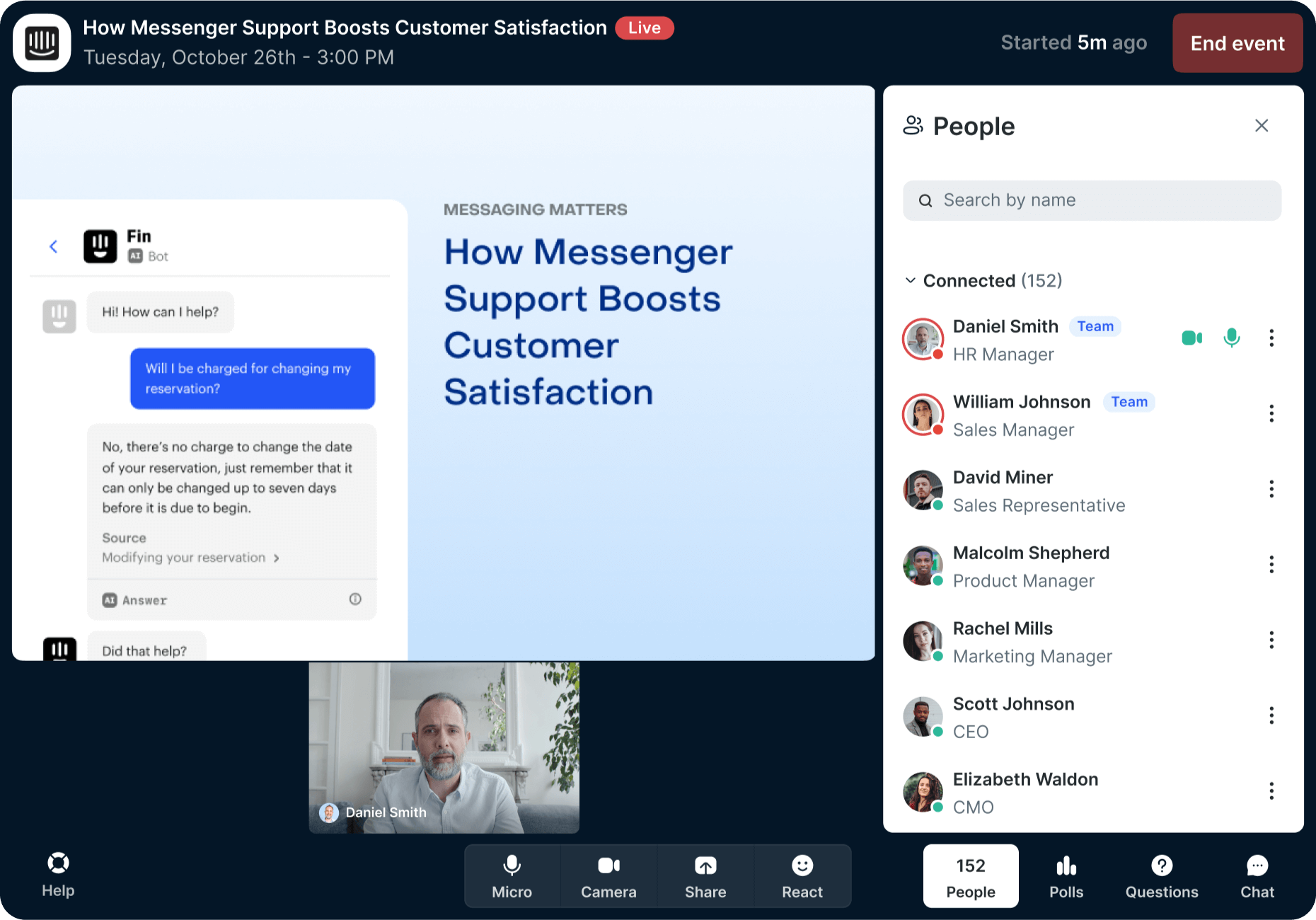 Livestorm fournit une plate-forme basée sur un navigateur pour les visioconférences, les webinaires et les réunions virtuelles. Il propose des fonctionnalités telles que le partage d'écran, le chat avec le public, les sondages et le co-hébergement, ce qui le rend adapté aux entreprises de toutes tailles. Vous pouvez organiser des webinaires en direct, des webinaires préenregistrés et organiser des événements à la demande ou récurrents sans avoir besoin de téléchargements. Livestorm s'intègre également à divers outils tels que Zapier, Salesforce et Mailchimp, et inclut des analyses pour suivre l'engagement des participants. Il prend en charge plusieurs appareils et propose des forfaits allant des options gratuites aux options premium.