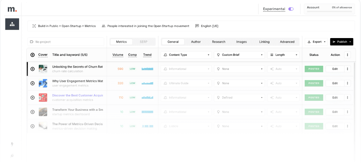 Le système entièrement automatisé Machined permet à quiconque de produire facilement du contenu qui renforce l'autorité et génère du trafic organique.