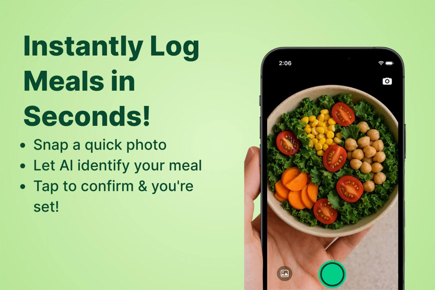 • Suivi instantané des photos : prenez une photo pour identifier automatiquement les ingrédients et estimer la taille des portions.