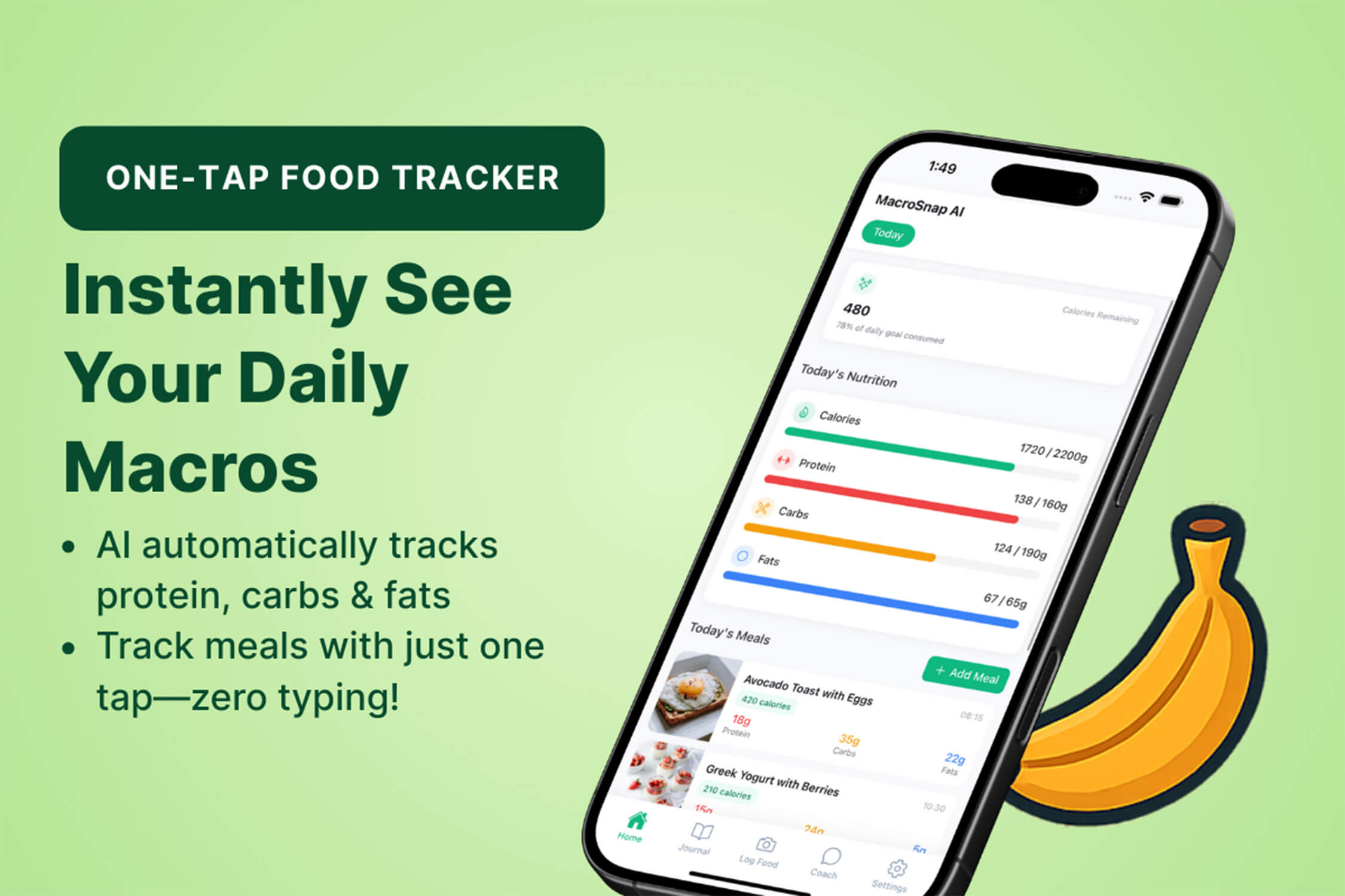 • Répartition macro complète : obtenez des données en temps réel sur les calories, les protéines, les glucides et les lipides sans recherche manuelle.