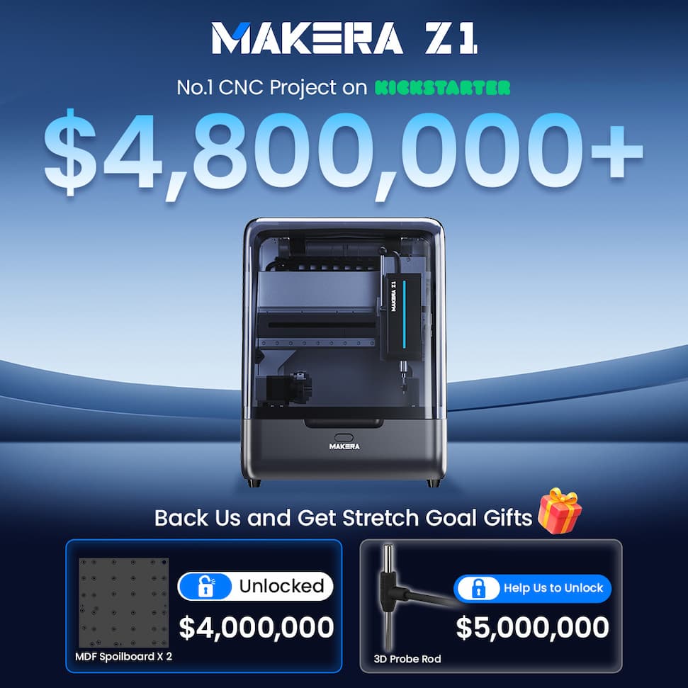 • 📩 Exclusivité e‑mail: Makera Z1 surpassed $4.8M with 4,000+ backers! Get 25% Early Bird deal & unlock 2nd stretch goal.