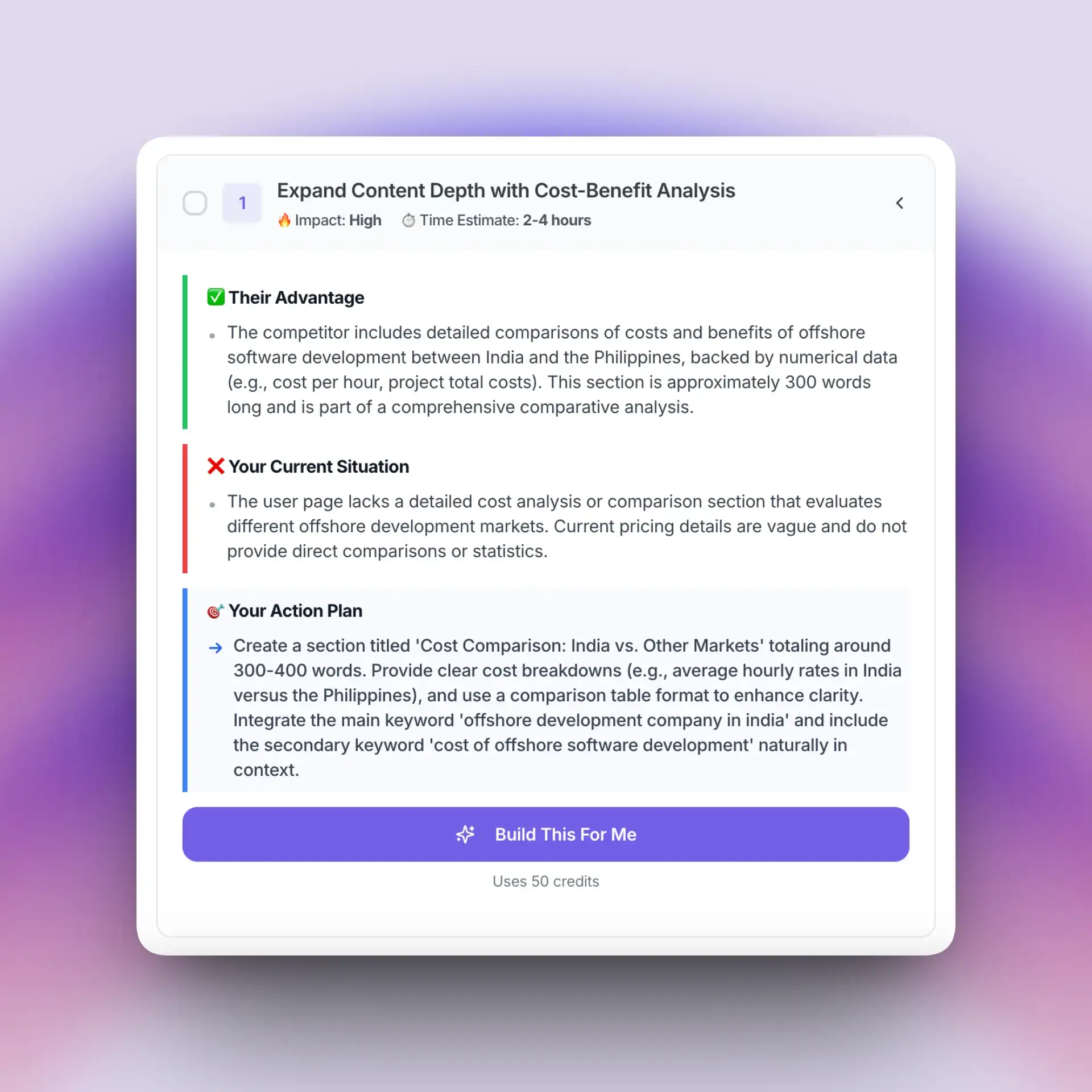 Outil de référencement basé sur l'IA qui diagnostique les problèmes et fournit des étapes d'optimisation exploitables.
