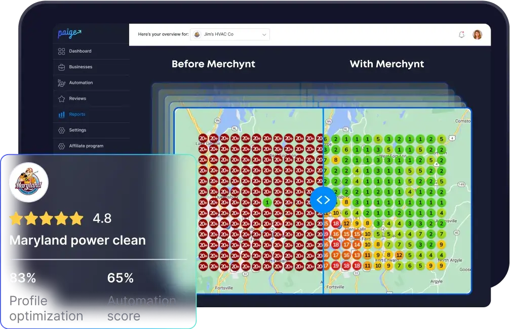Heatmap et suivi du classement local : cartes quadrillées visuelles pour suivre le classement de votre entreprise dans différentes zones géographiques.