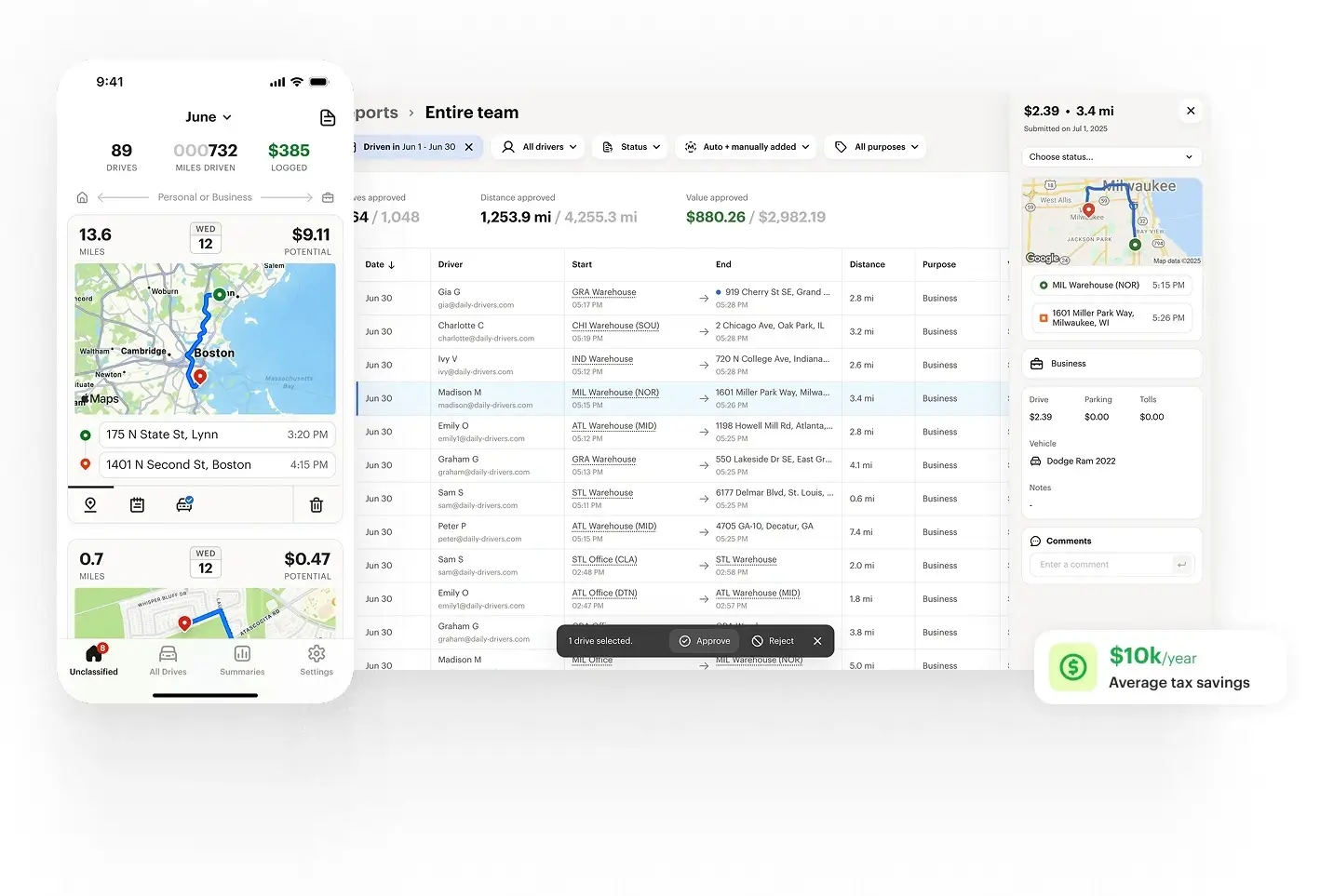 Application automatique de suivi et de reporting du kilométrage pour les entreprises et le remboursement des impôts.