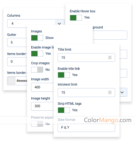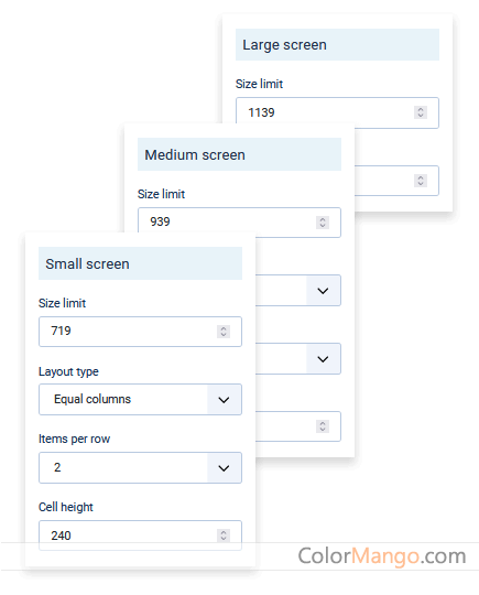 Configurez la hauteur des éléments et le nombre d'éléments par ligne séparément pour chaque appareil.