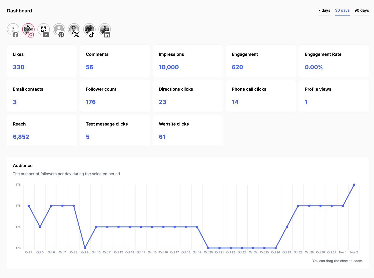 Publication et planification unifiées sur les principaux réseaux sociaux à partir d'un seul tableau de bord.