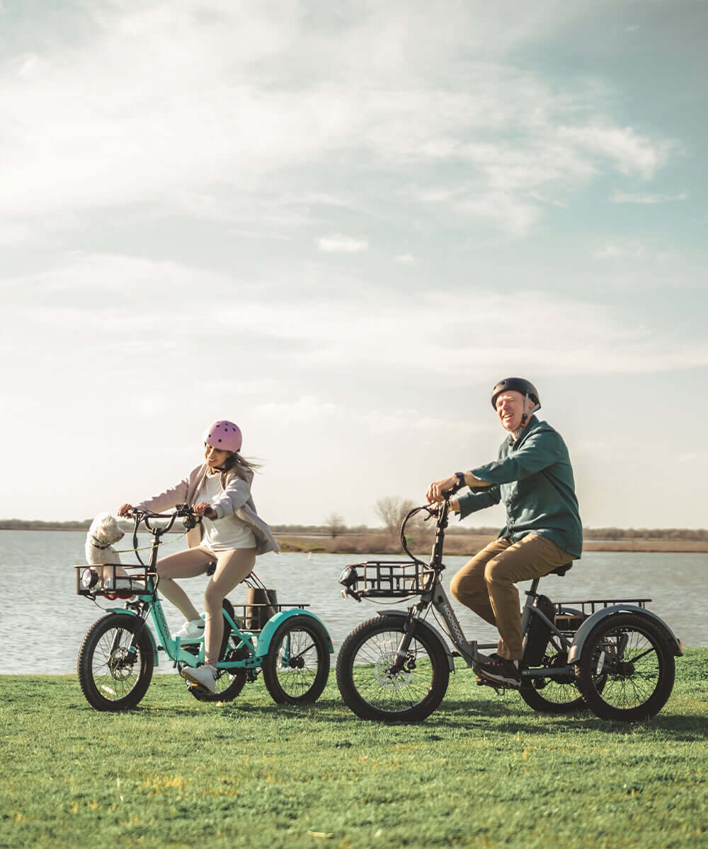 Tricycles électriques, accessoires et pièces destinés à une conduite confortable et accessible pour les adultes et les personnes âgées.