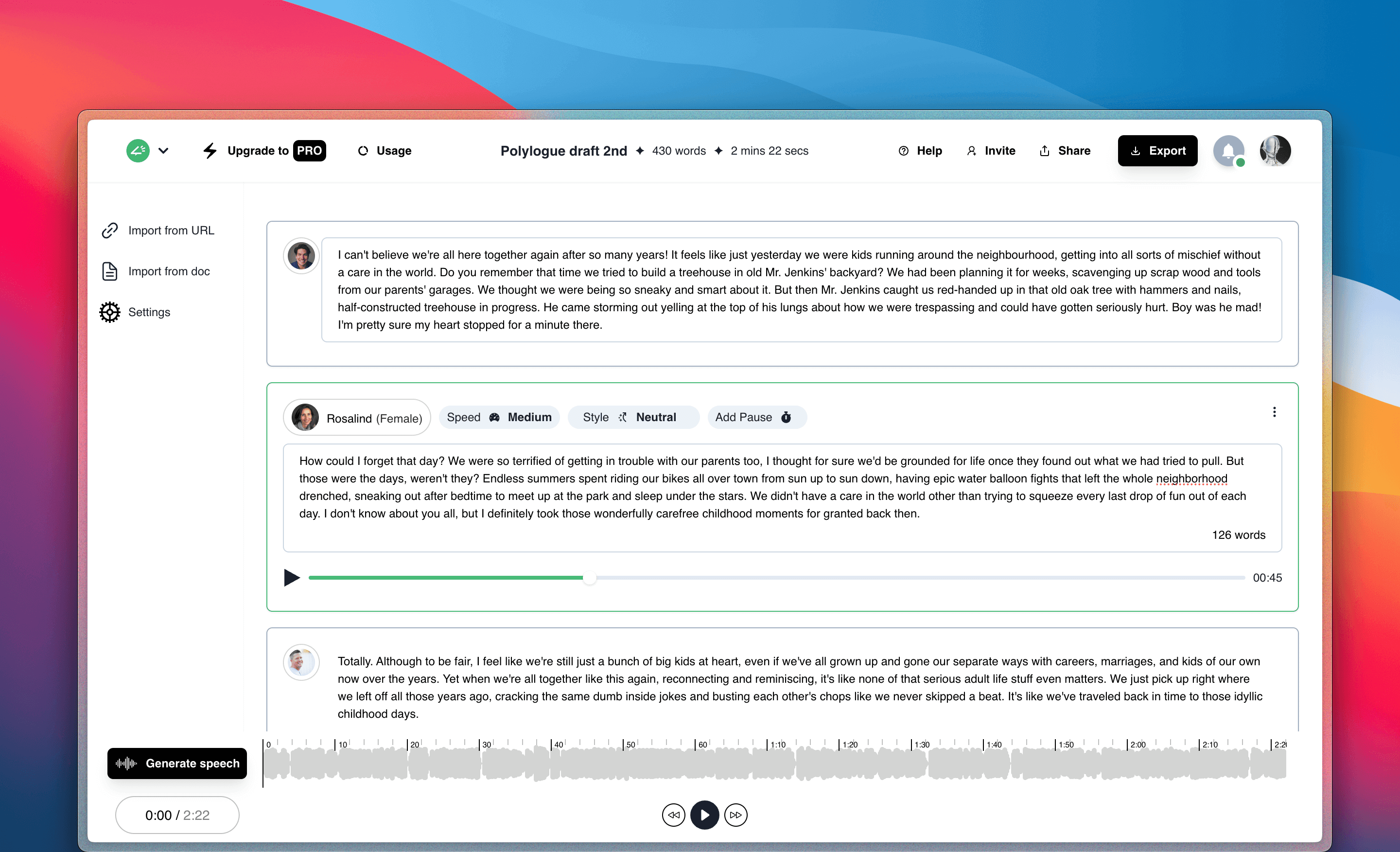 Narration Box est une plateforme de synthèse vocale alimentée par l'IA qui propose des voix off expressives, des livres audio, des podcasts et des widgets audio de qualité studio à l'aide de plus de 700 narrateurs IA sensibles au contexte dans plus de 70 langues et accents.
