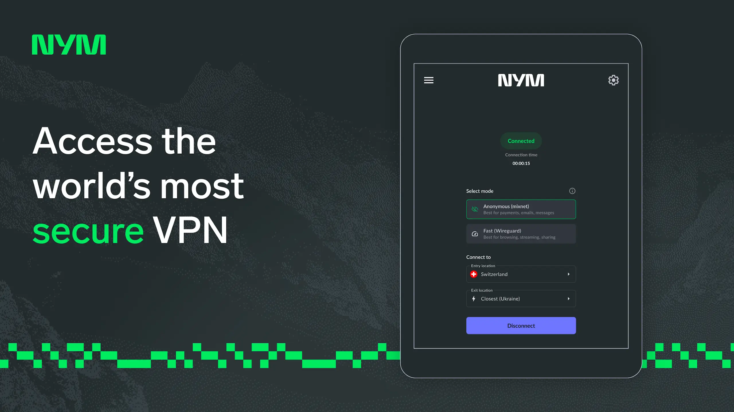 Deux modes de confidentialité : choisissez entre le mode rapide (WireGuard à 2 sauts) et le mode anonyme (Mixnet à 5 sauts)