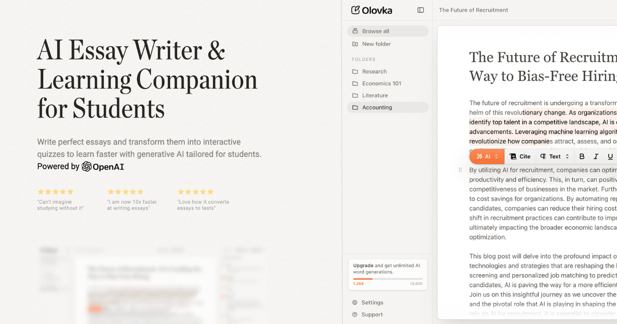 Olovka AI est bien plus qu'un simple outil d'écriture, c'est un compagnon d'étude qui vous aide à chaque étape de la rédaction académique, tout en vous aidant à apprendre plus efficacement en cours de route.
