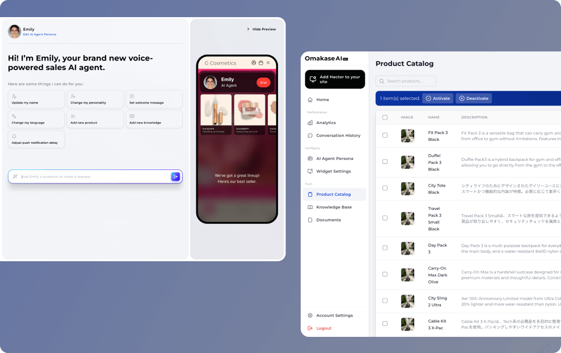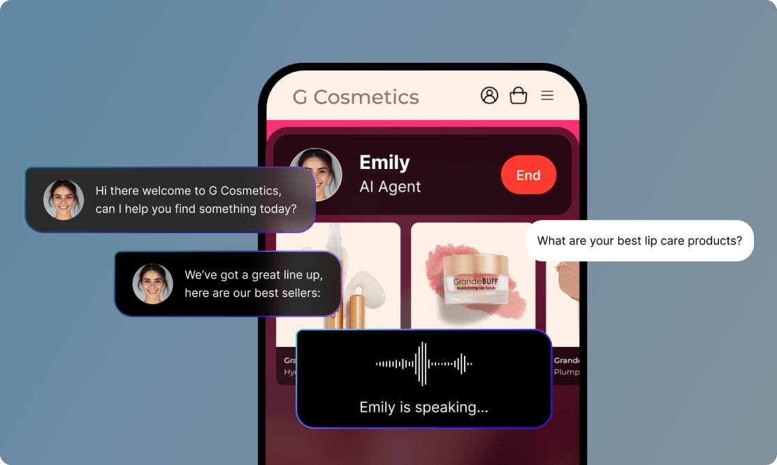 Turn your website into a voice-powered AI sales agent that talks, listens and helps your customers buy.