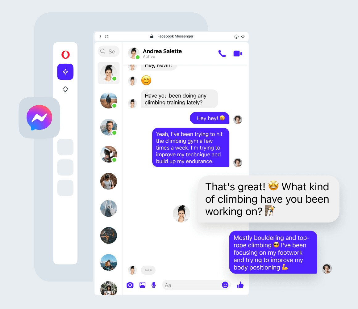 Le navigateur Opera Desktop associe navigation et productivité en proposant un bloqueur de publicités, un VPN gratuit et professionnel, un assistant Aria AI, des messageries intégrées et des outils de réseaux sociaux.