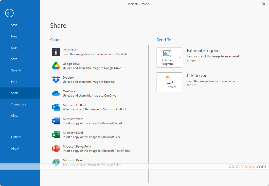 PicPick est livré avec de nombreuses options d'édition d'images telles que le recadrage, le redimensionnement, la rotation, l'ajout d'effets, de texte, de filigranes, etc. Il fournit également de nombreux accessoires graphiques tels que des sélecteurs de couleurs, des palettes de couleurs, des tableaux blancs, une règle de pixels, etc. Les images peuvent être enregistrées ou partagées par e-mail, sur le Web, sur Google Drive, Dropbox, SkyDrive, Evernote, Box, Facebook et d'autres plateformes populaires.