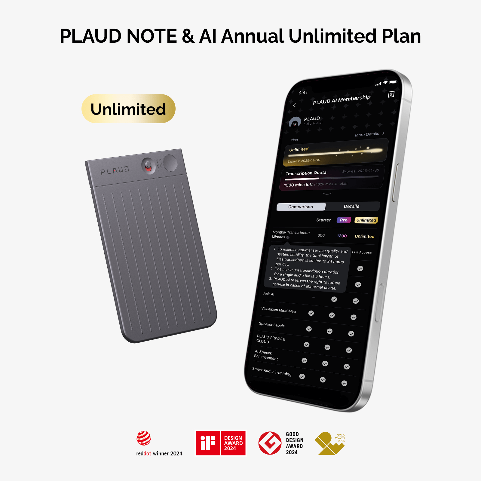 Forfait annuel illimité PLAUD NOTE & AI