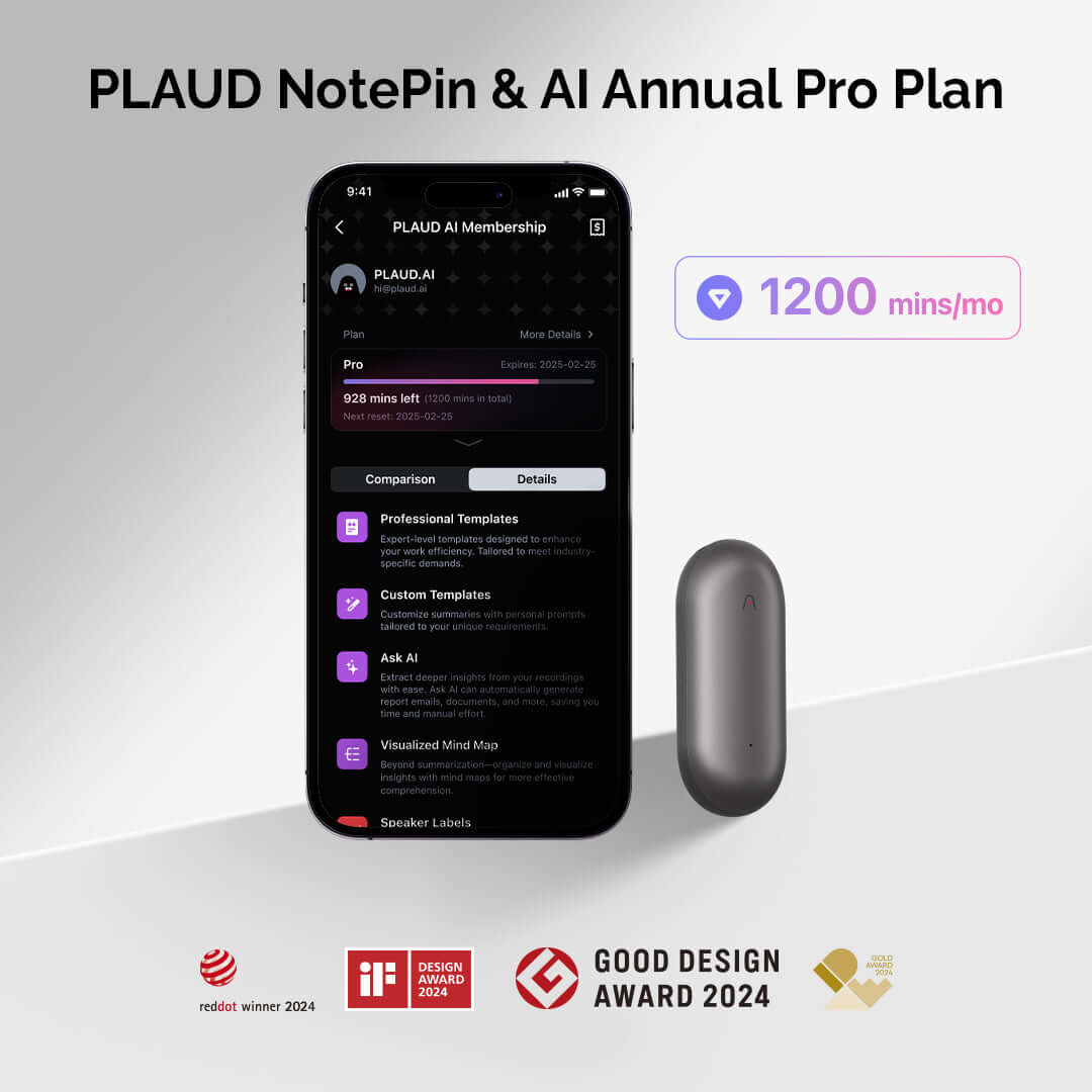 Plan professionnel annuel PLAUD NotePin & AI