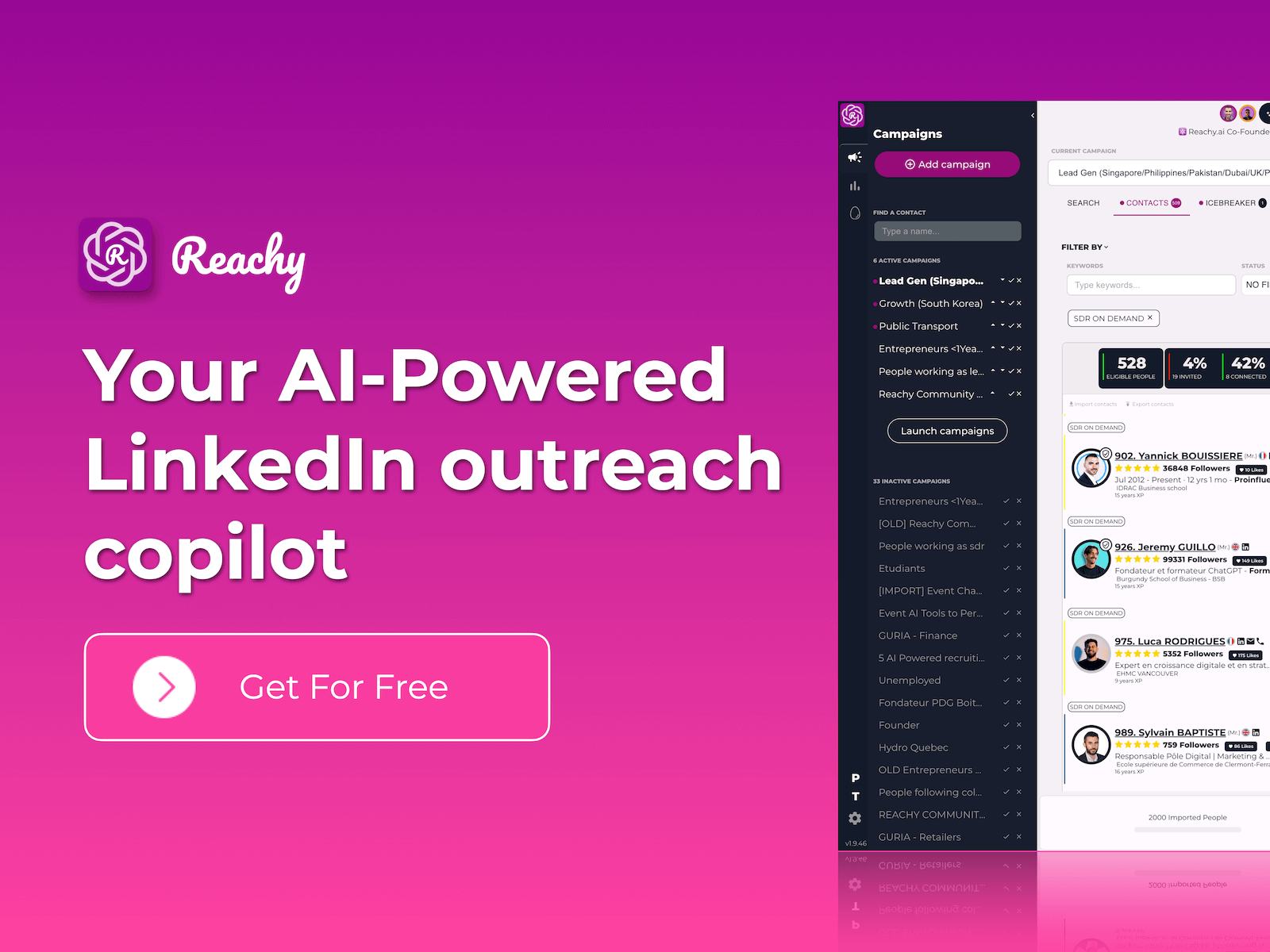 Personnalisation alimentĂ©e par l'IA : Reachy s'intĂšgre au modĂšle GPT-4 d'OpenAI pour personnaliser les messages, les traduire dans la langue du prospect et mĂȘme suggĂ©rer des rĂ©ponses pour poursuivre la conversation.