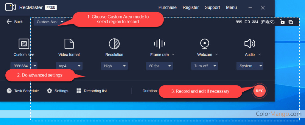 RecMaster is a screen video recording software supporting HD recording, can customize the recorded video format, quality, size, and so on, and it is also very convenient to use.