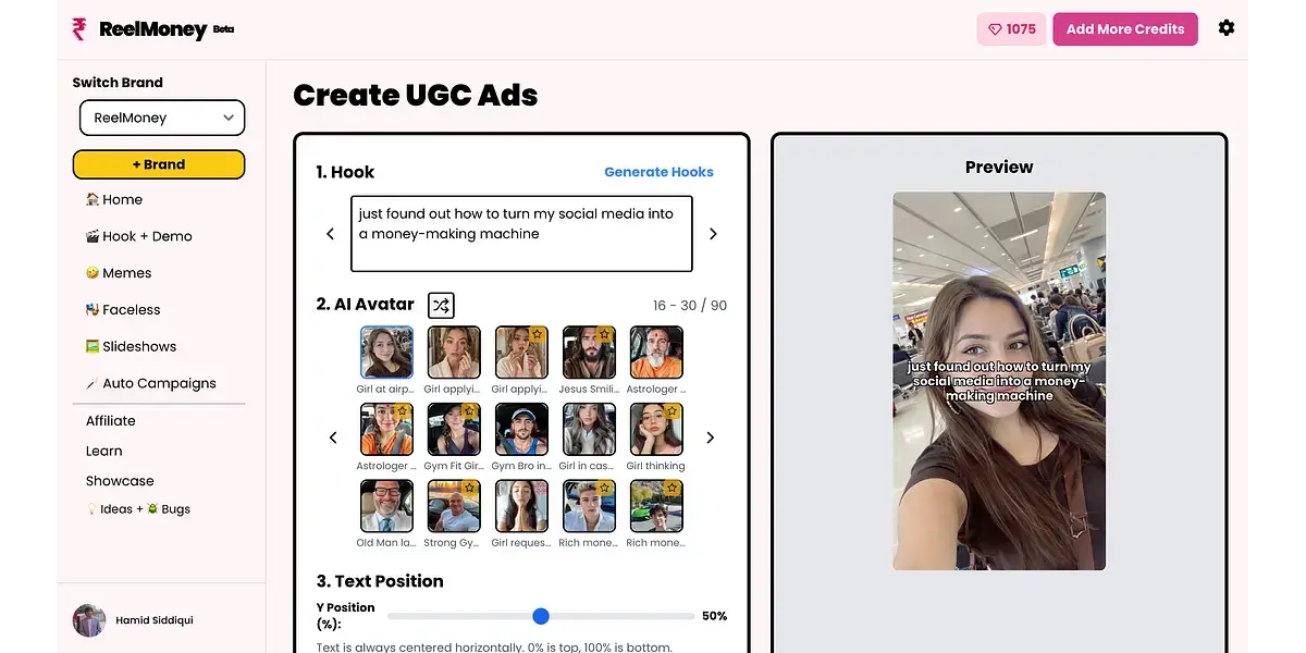 ReelMoney aide les utilisateurs à automatiser la croissance des réseaux sociaux en générant et en programmant du contenu attrayant à grande échelle, notamment :
