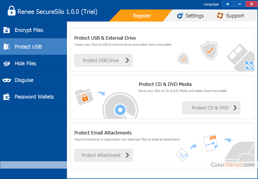 Renee Secure Silo Caractéristiques Interface simple, pas de courbe d'apprentissage et facile à utiliser. Si le chiffrement, le masquage ou le déguisement de fichiers peuvent être effectués en quelques secondes. L'algorithme de cryptage AES256 est adopté, qui n'est pas au format ouvert et présente une bonne confidentialité. Supportez le cryptage sécurisé de tous les types de fichiers tels que les photos, les vidéos, les fichiers bureautiques et les applications.