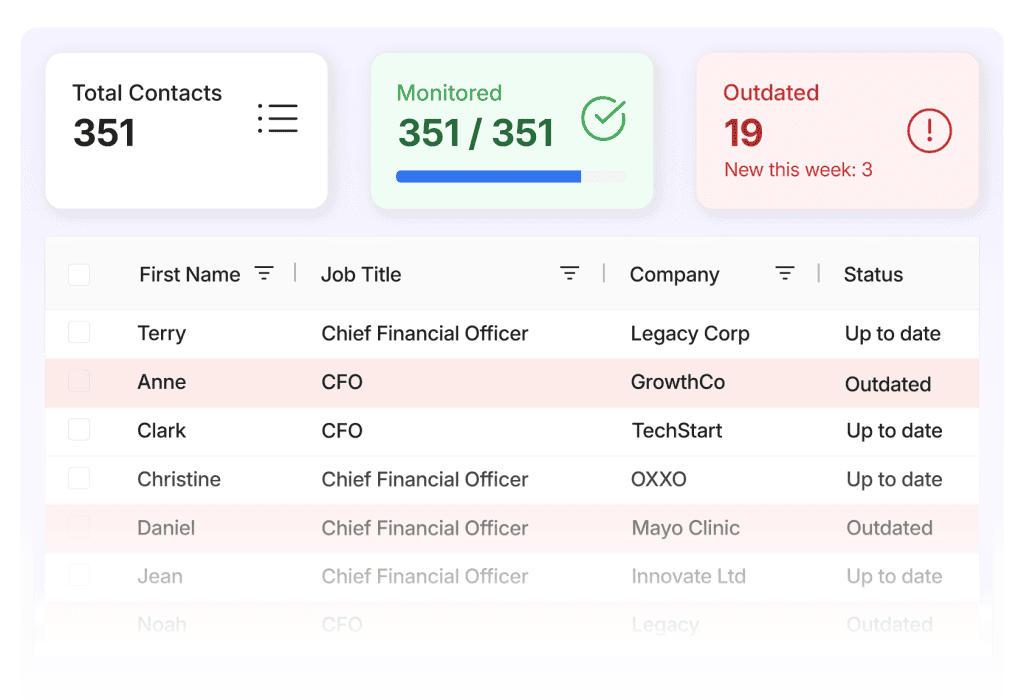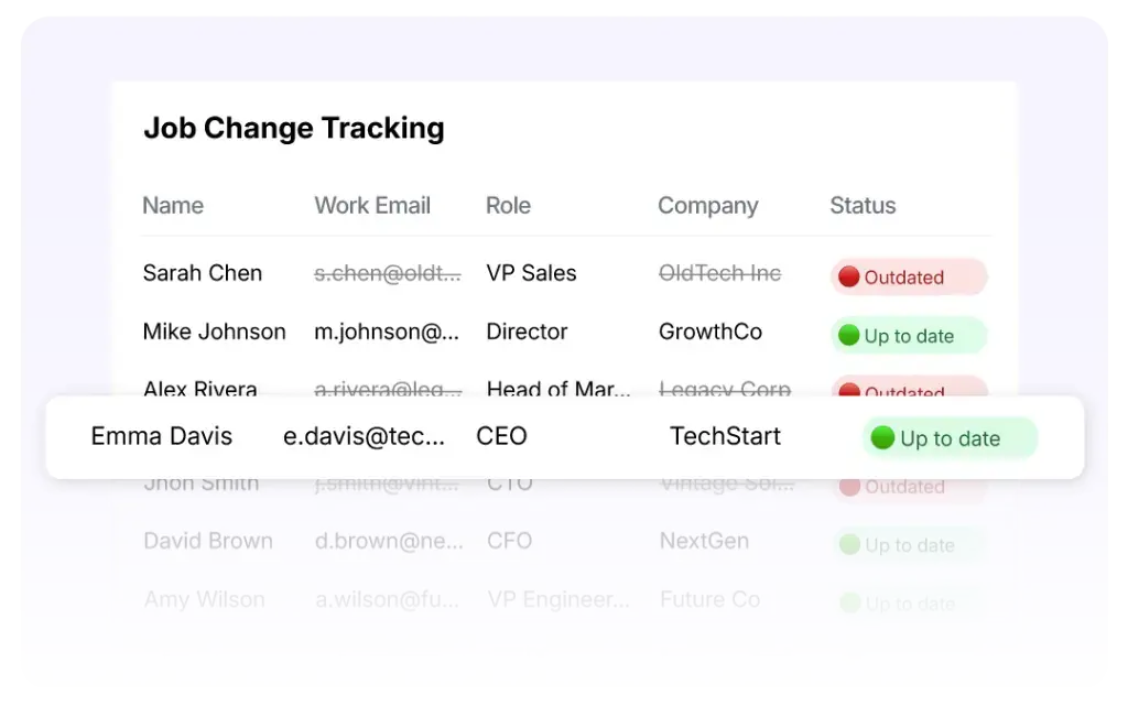 Surveillance en temps réel des changements d'emploi ou d'entreprise des prospects, afin de maintenir votre base de données à jour.