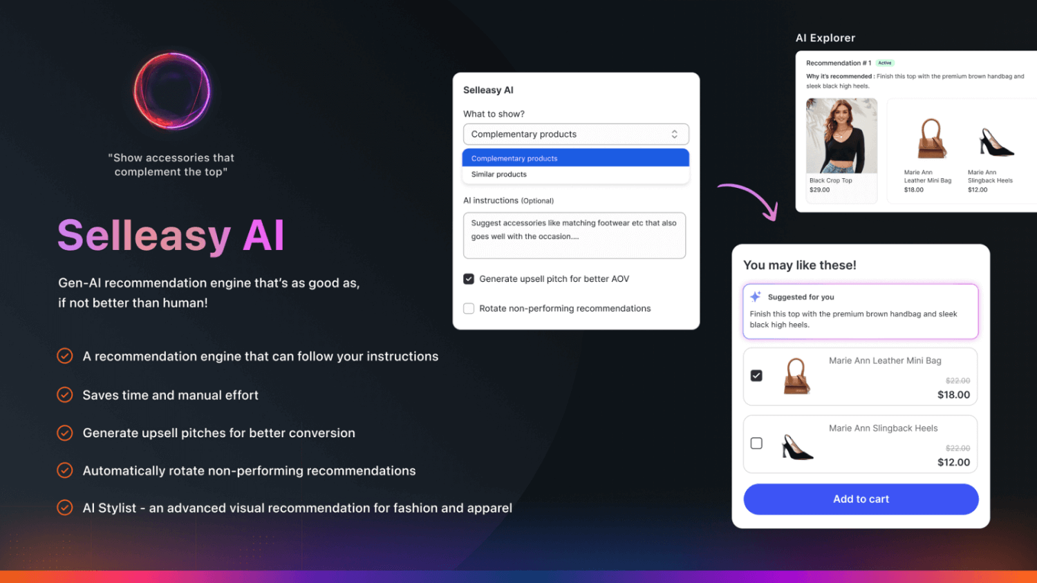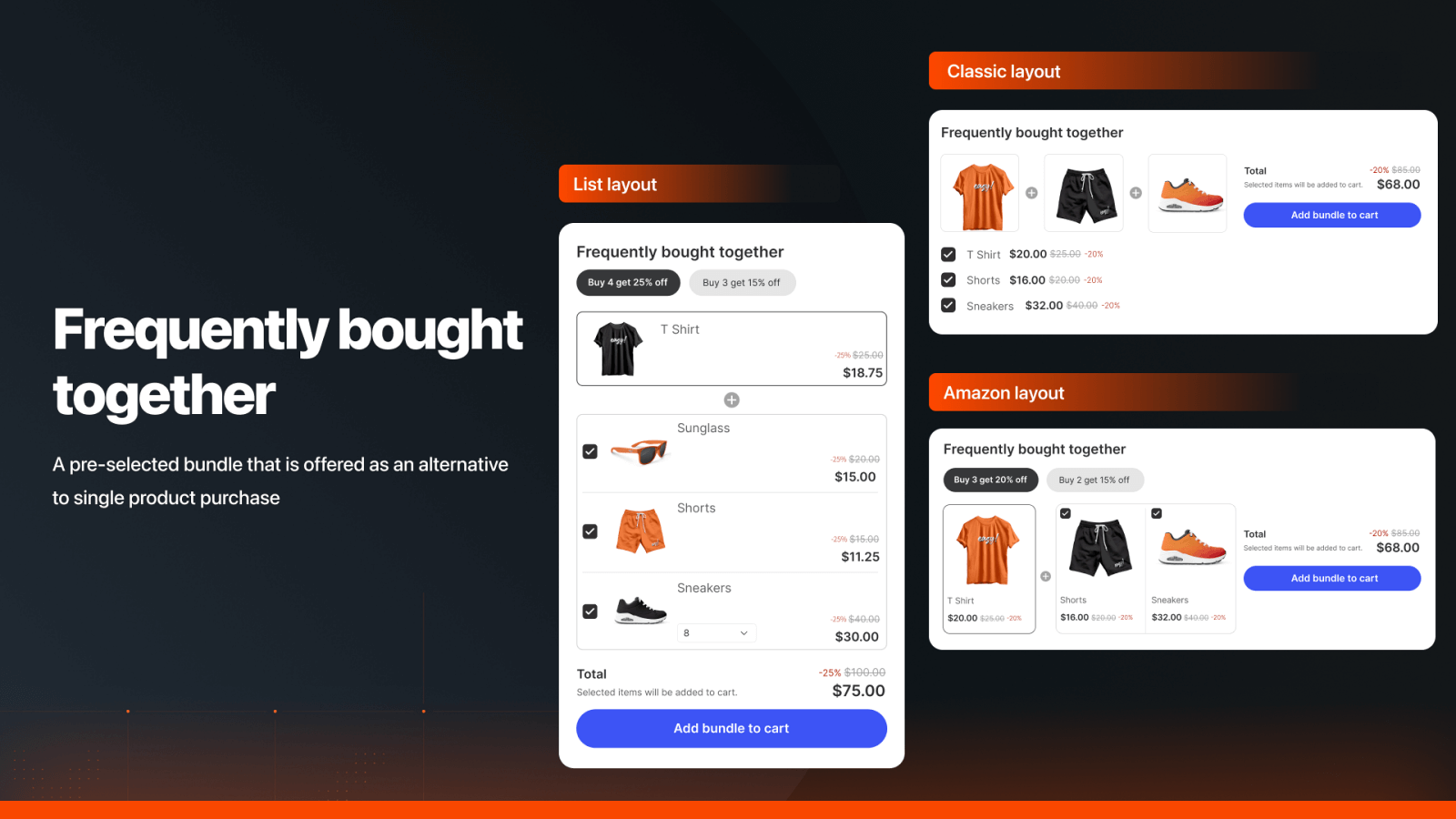 • Conçu pour les boutiques Shopify qui cherchent à augmenter la valeur moyenne des commandes avec un minimum de configuration.