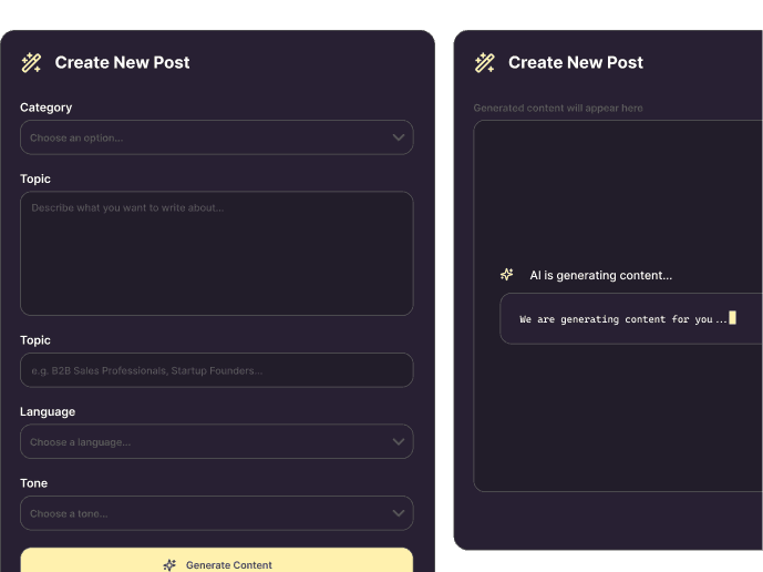 Générateur de contenu IA : créez automatiquement des publications et des messages LinkedIn attrayants.