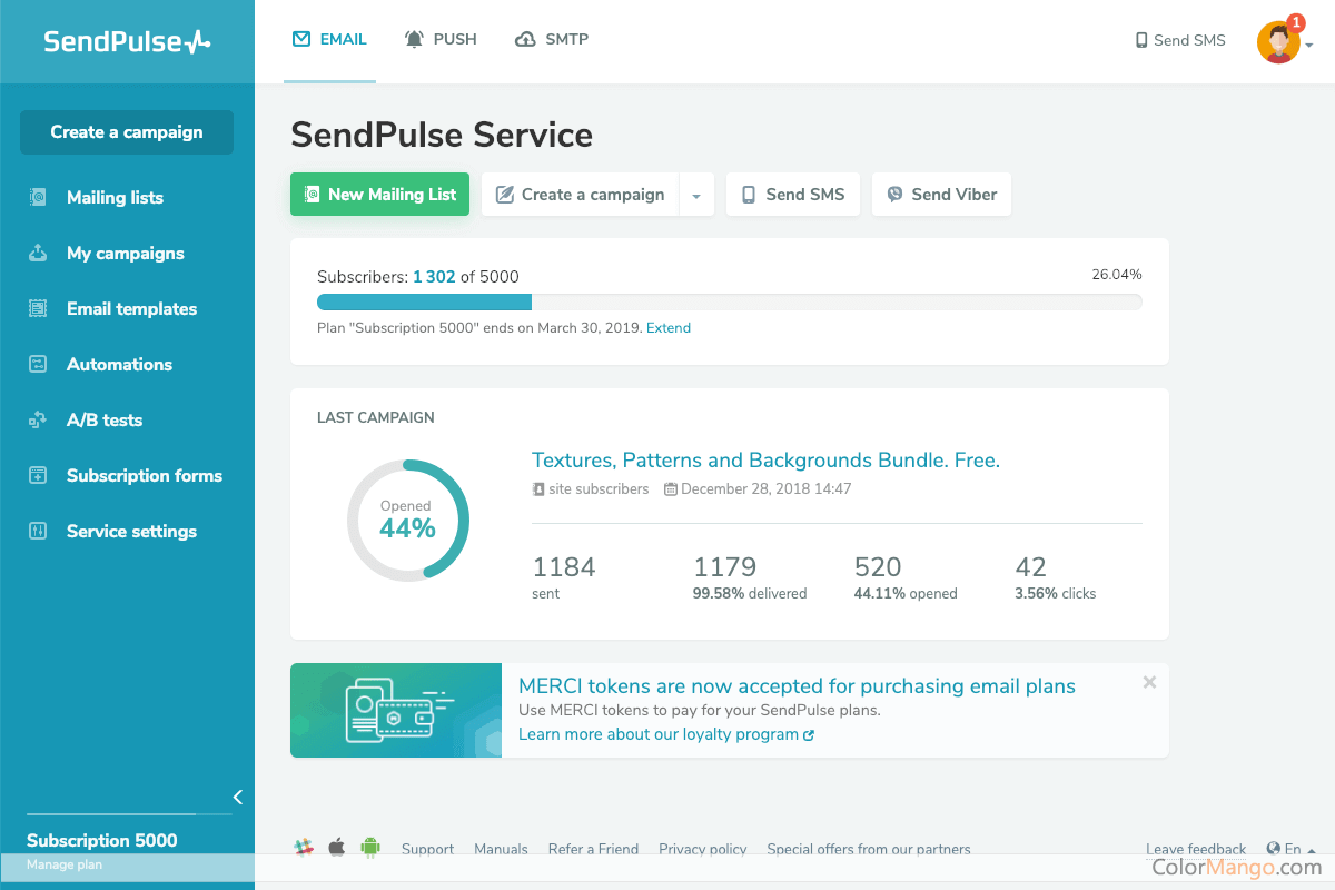 A cloud-based marketing solution, include SMS integration, emails, web push, social media chatbots and more.