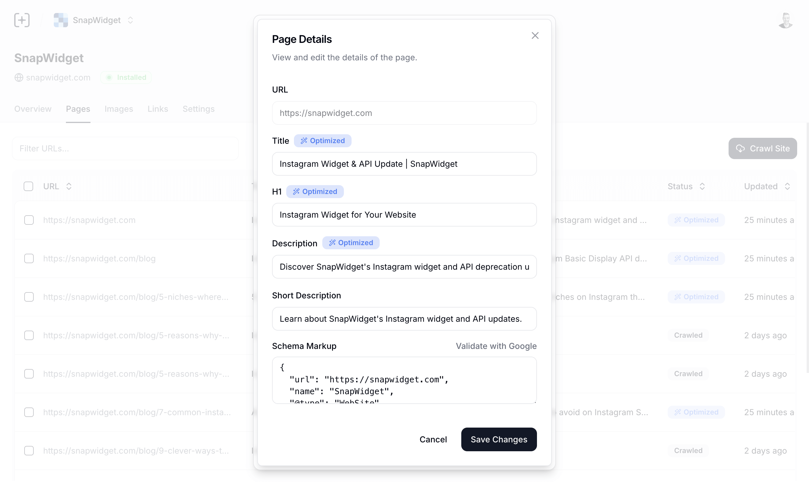 Explorez automatiquement votre site et corrigez le titre, la description et les balises H1 manquants ou sous-optimaux à l'aide de l'IA.