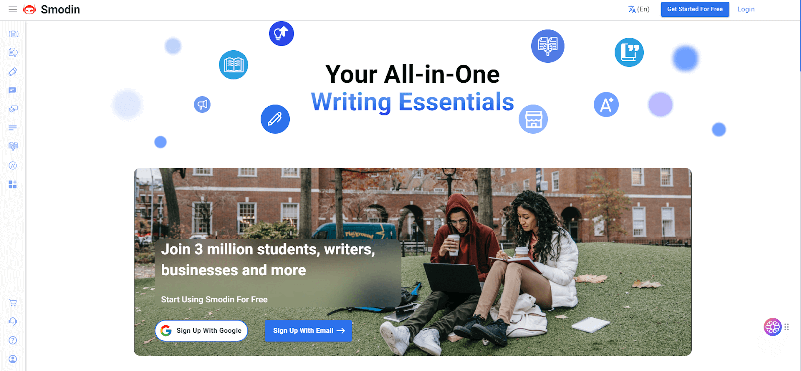Smodin propose une variĂ©tĂ© d'outils pour aider les utilisateurs Ă rĂ©diger, Ă effectuer des recherches, Ă dĂ©tecter le plagiat et Ă crĂ©er du contenu. Conçu pour ĂȘtre utile aux Ă©tudiants, aux enseignants, aux chercheurs et aux rĂ©dacteurs, Smodin fournit des fonctionnalitĂ©s telles que la rĂ©daction par IA, la réécriture de texte, la synthĂšse et la vĂ©rification du plagiat, tout en prenant en charge plusieurs langues.