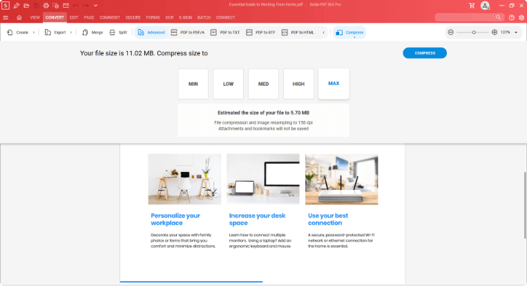 Soda PDF 360 Pro allows users to create, edit, split, merge, convert, view, and annotate PDF files. And the Pro version supports more features like customizable forms, sign and secure PDF with password and permission setting. It can convert 300+ file formats like Word, Excel, PowerPoint to PDF with a single click, or the other way around as converting PDF to Word, Excel, PPT, image, HTML, TXT, and RTF.