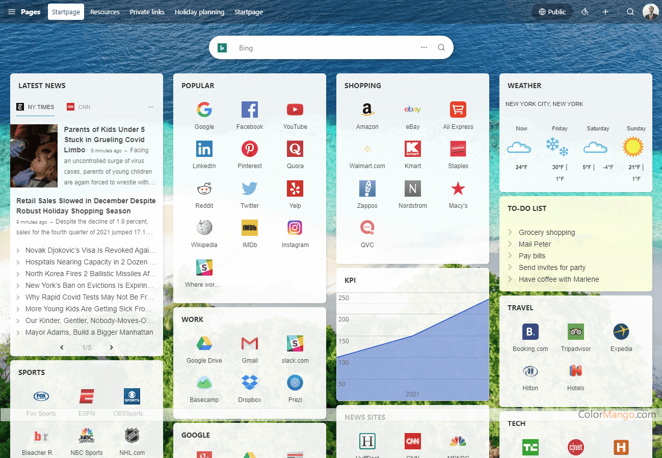 With Start.Me Pro Web Productivity, you can spend less time searching for links and be more productive. It allows you to build a personal browser start page with a large selection of widgets, background pictures, calendar, notes, tasks, and customize everything the way you like. You can manage your bookmarks by easily filtering out duplicate and broken links, also importing and exporting your bookmarks, and accessing them across all your browsers and devices.