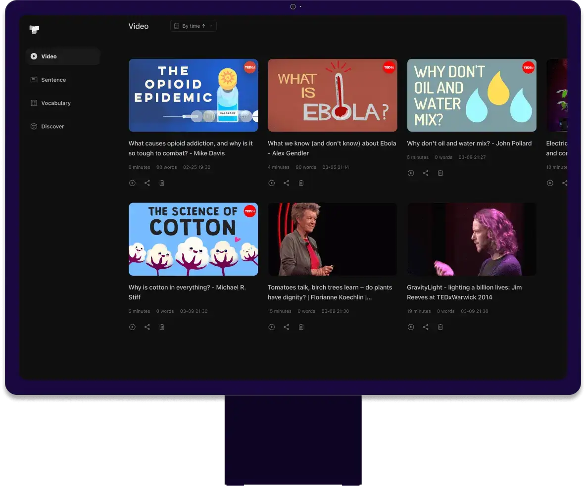 Assistant d'apprentissage des langues alimenté par l'IA avec sous-titres vidéo, traductions et outils de révision intelligents.