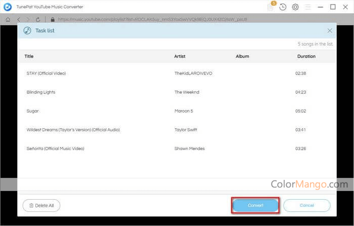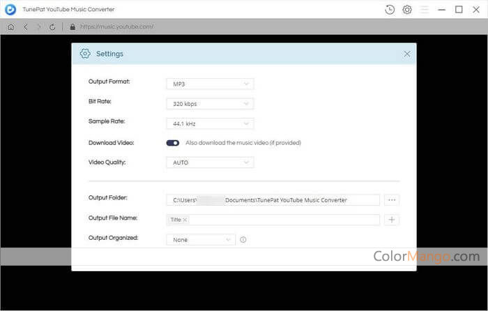 TunePat YouTube Music Converter peut convertir et télécharger des listes de lecture de musique YouTube pour une lecture hors ligne. Le convertisseur fournit différents formats de sortie, notamment MP3, AAC, FLAC, WAV, AIFF et ALAC. Vous pouvez personnaliser le débit, la fréquence d'échantillonnage et le nom du fichier de sortie des chansons YouTube sélectionnées à télécharger.